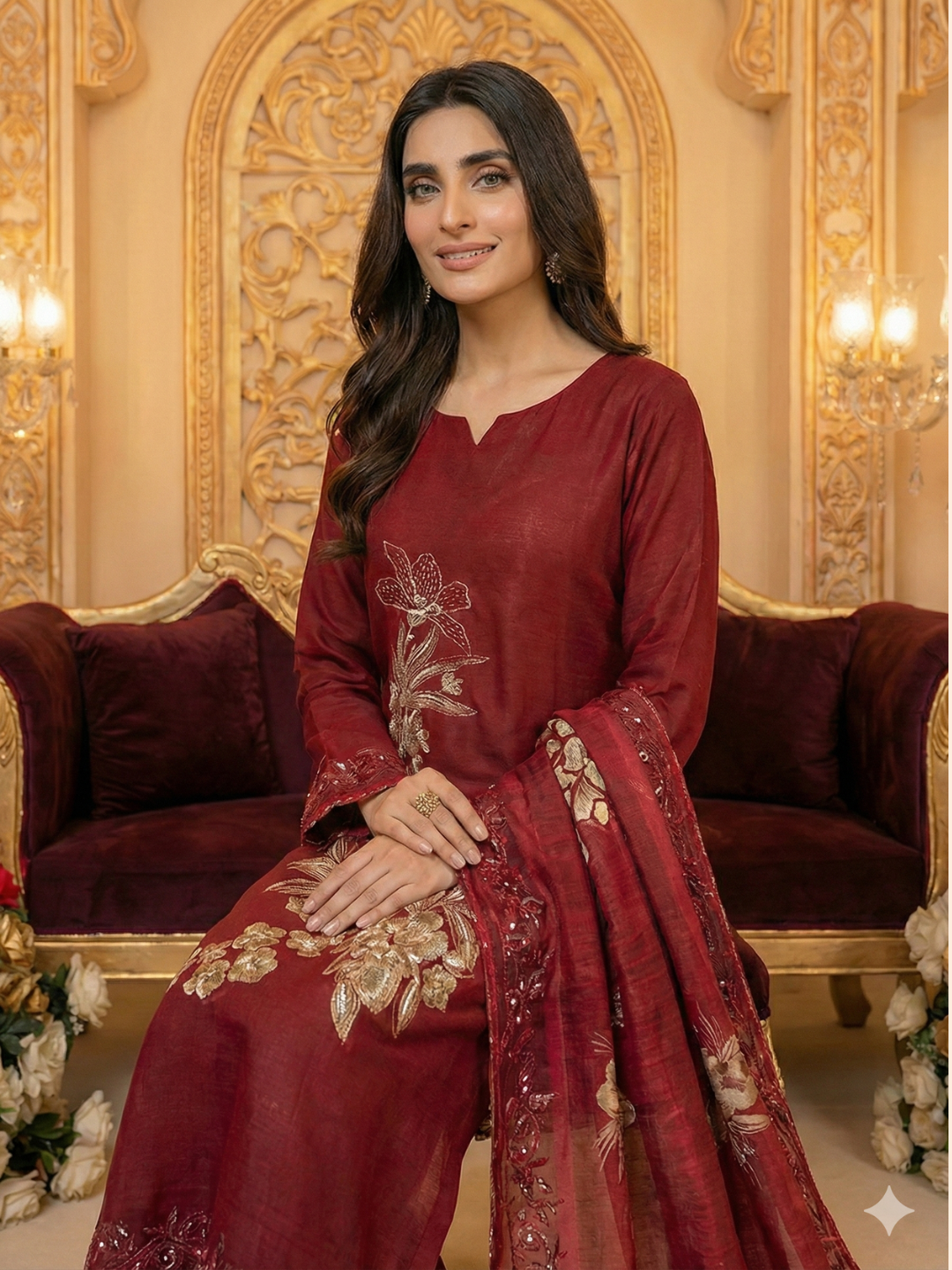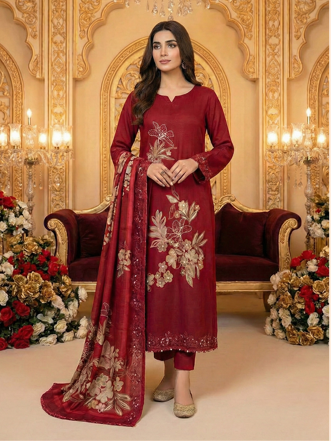 Shirt: Premium cashmere organza shirt adorned with digital print, delicate with embroidery. The digitally printed back adds a luxurious finish. (Length: 2.50 meters)