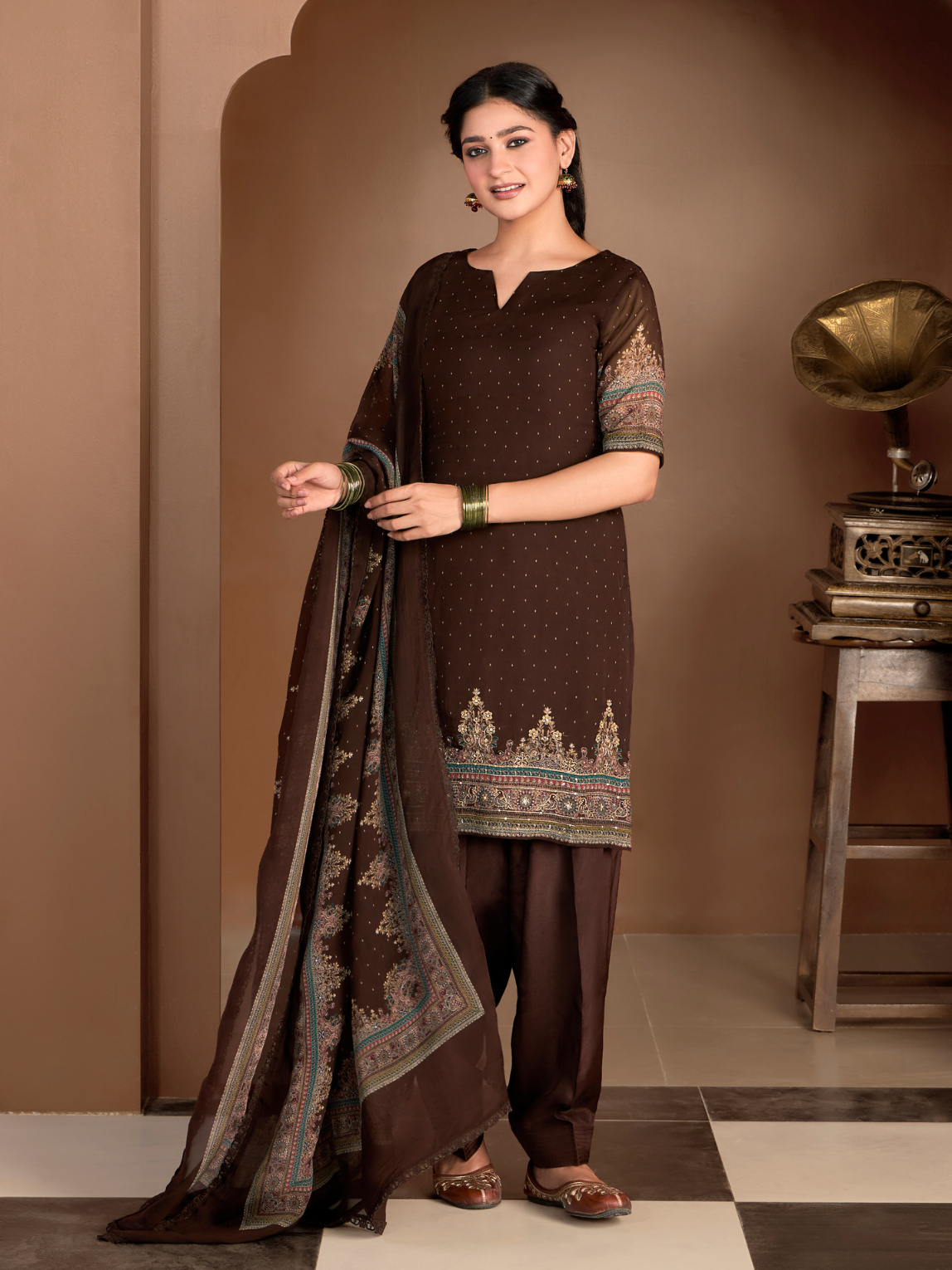 Bottom: Smooth plain crepe bottom in a matching tone for comfort and elegance.(Length: 2.75 meters)