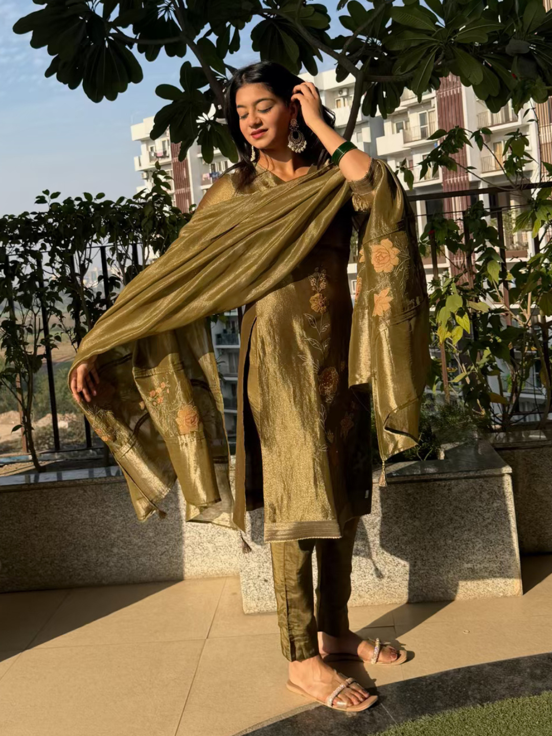 Bottom: Soft plain upada silk bottom for a comfortable and sleek fit. (Length: 2.75 meters)