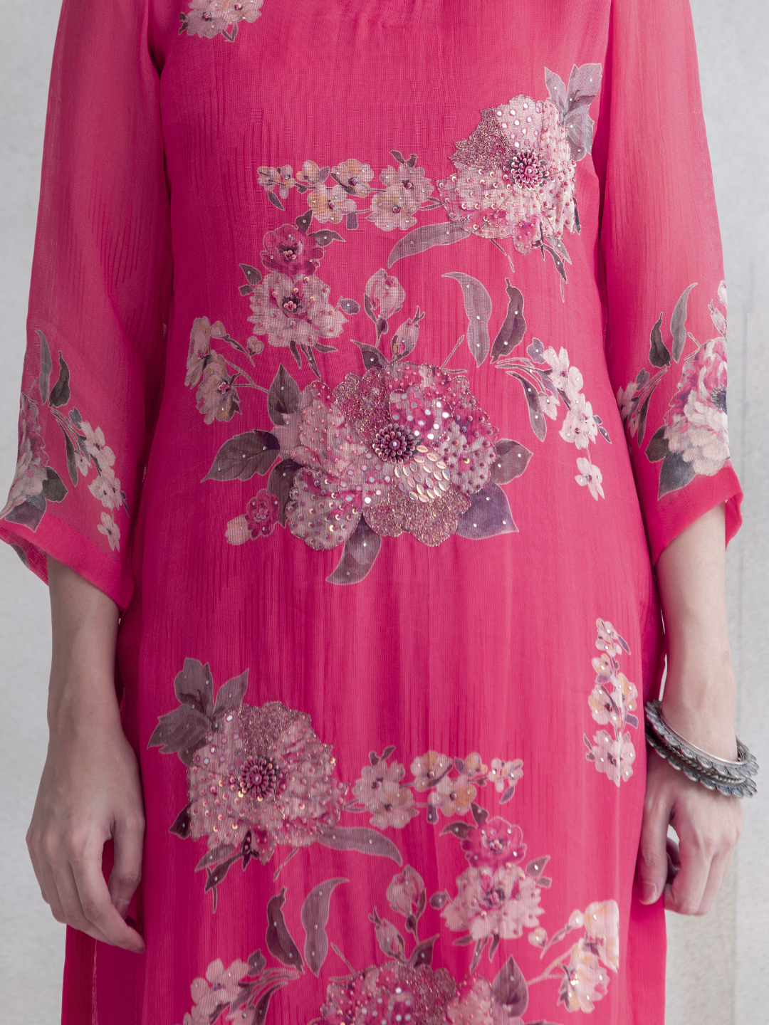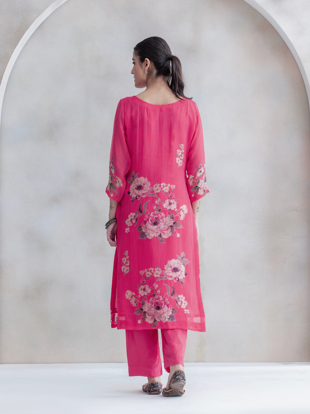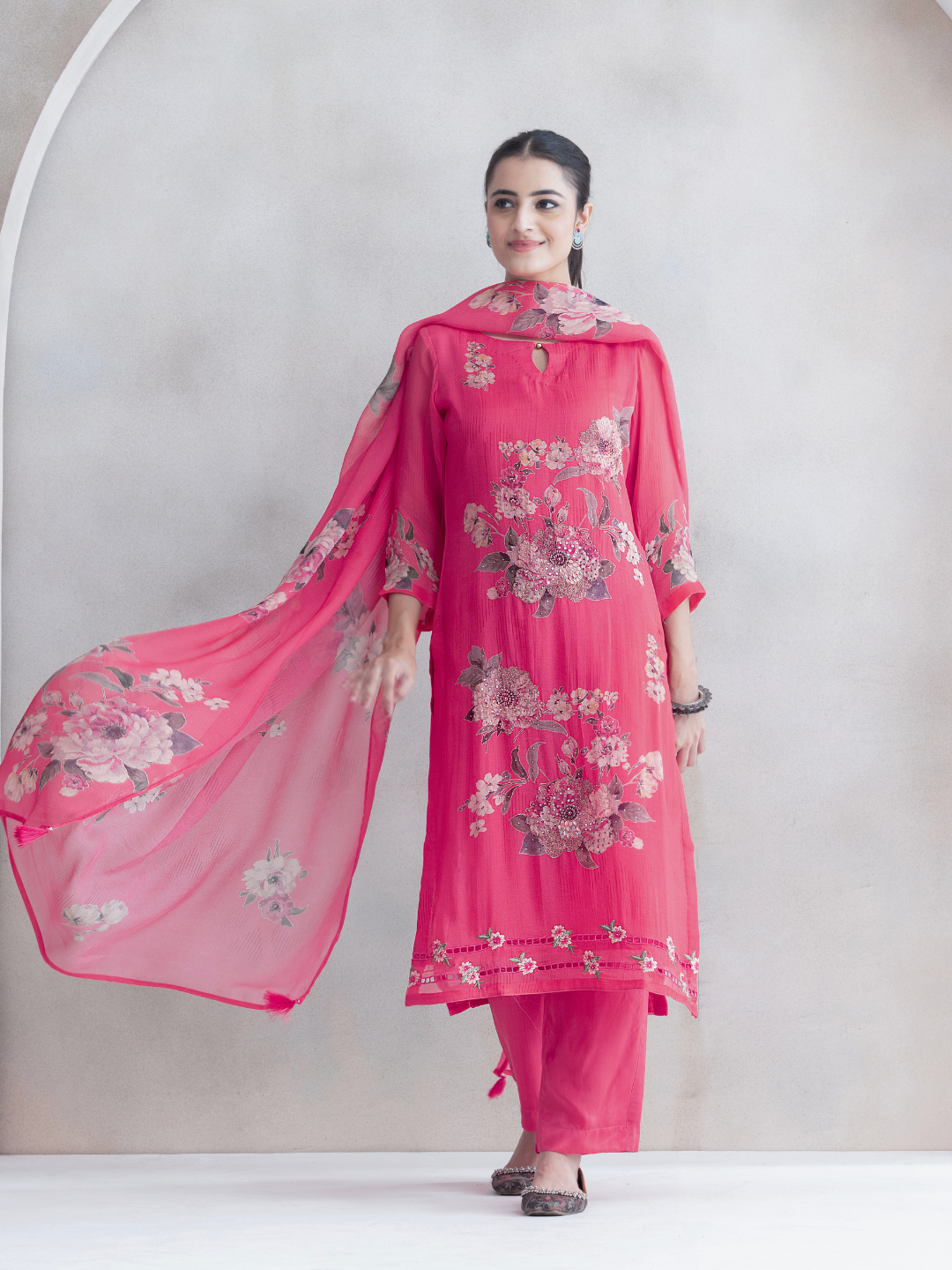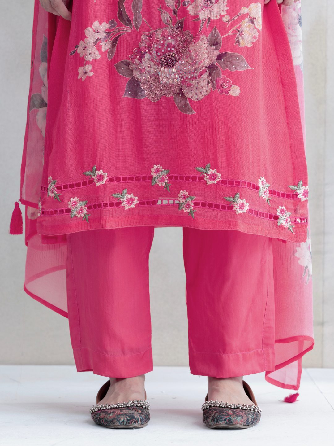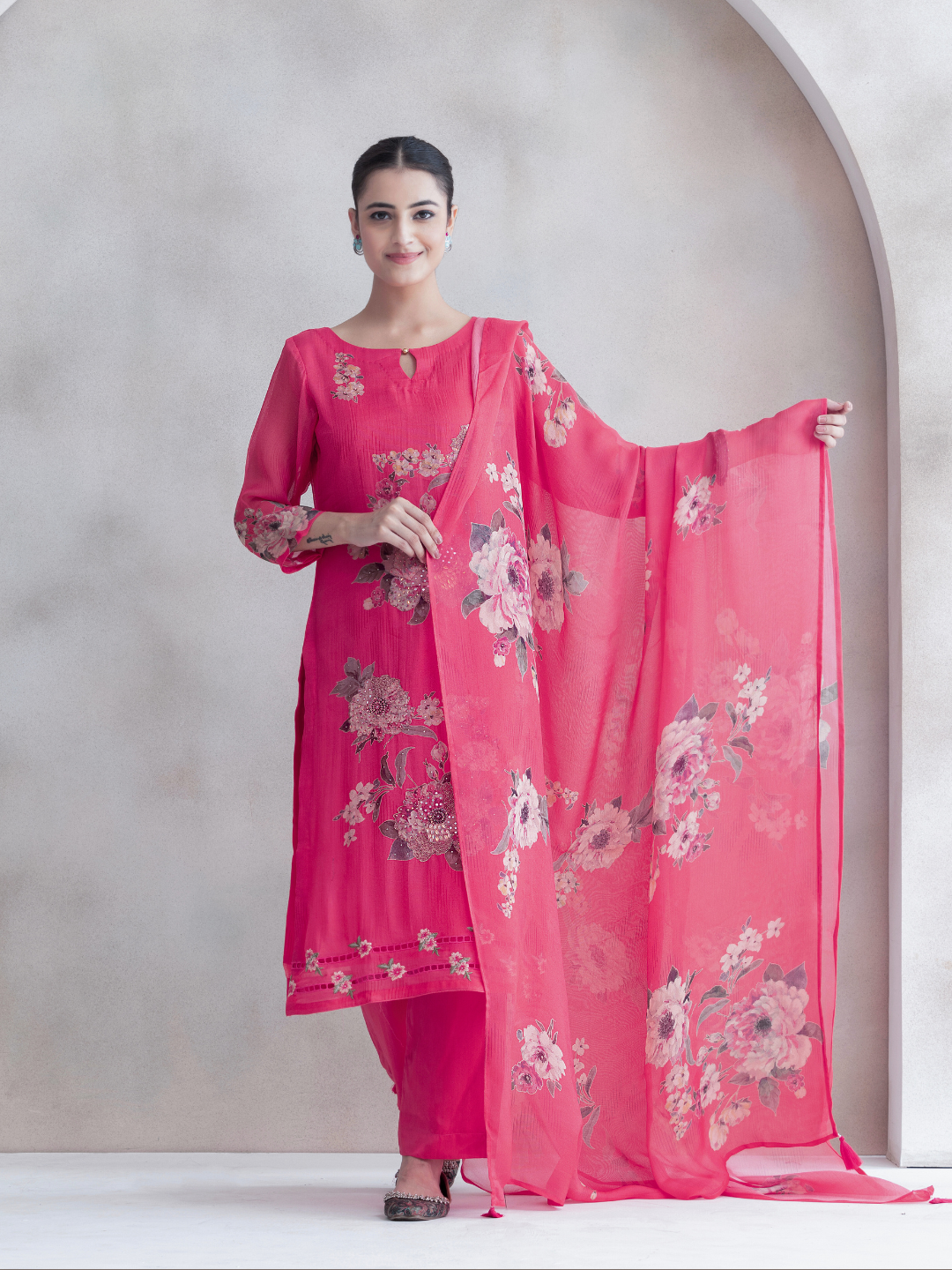 Dupatta: Matching organza dupatta with digital print, beautifully finished with lace on all four sides. (Length: 2.40 meters)