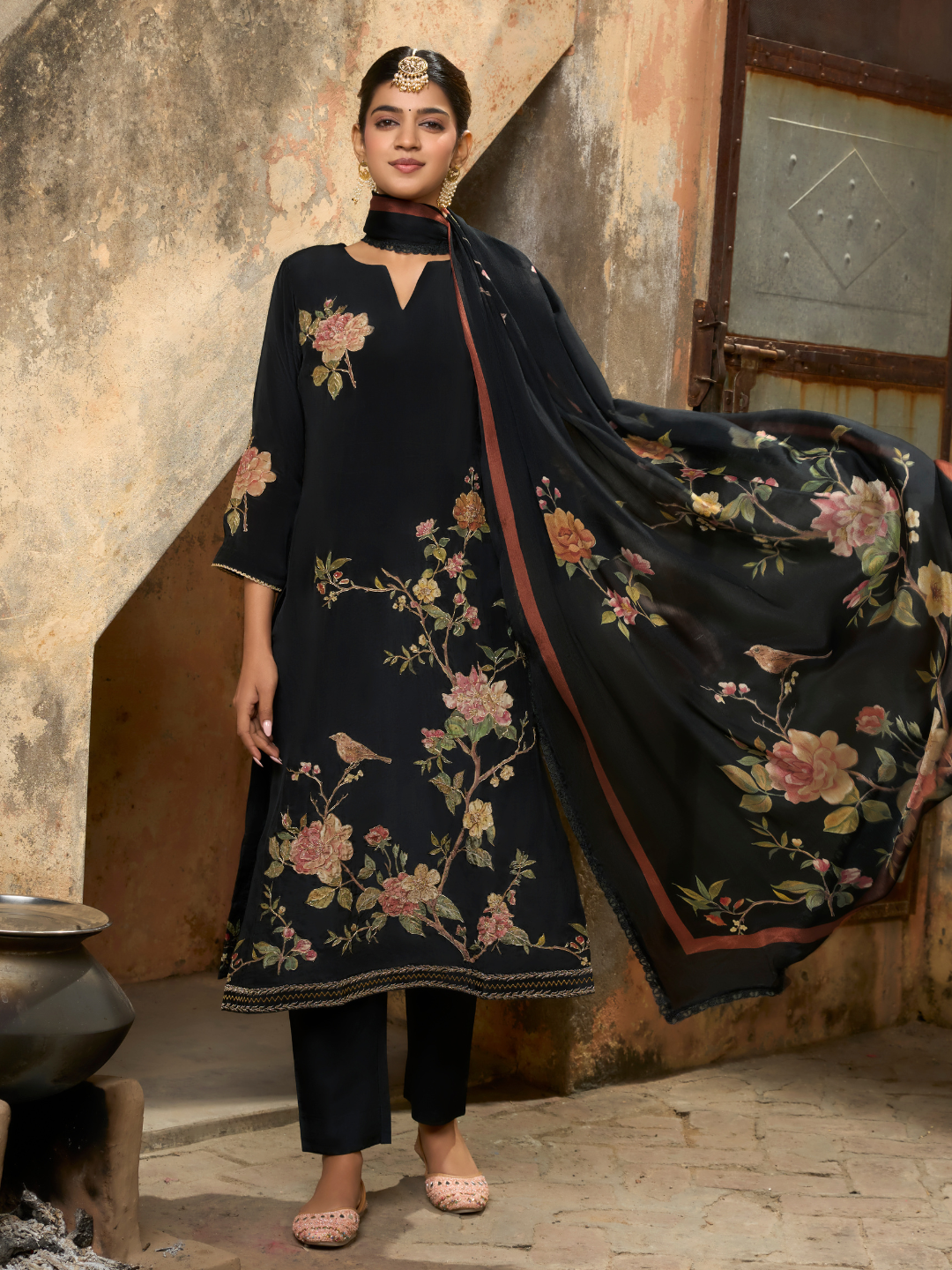 Dupatta: Matching printed Crepe dupatta finished with a delicate lace border.