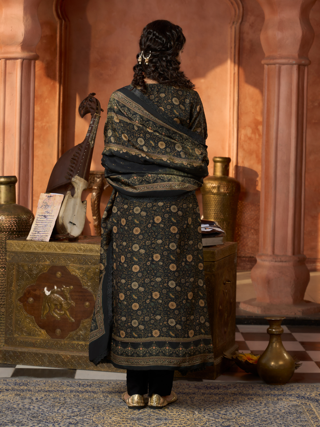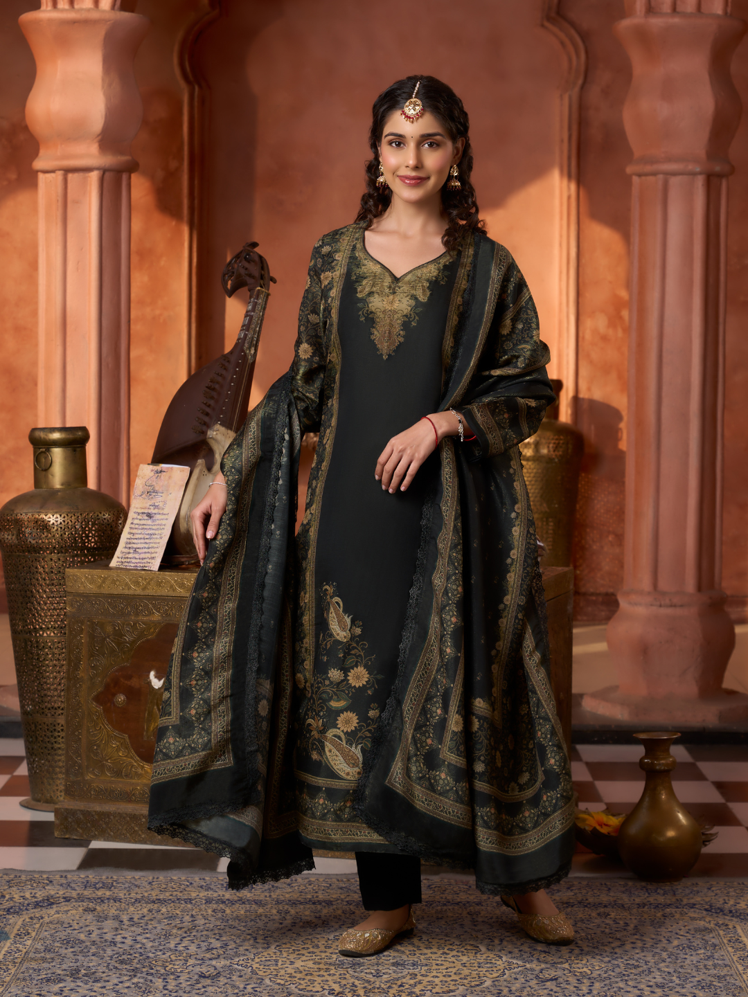 Dupatta: Matching gucci silk Kashmiri-style printed dupatta with all side lace. (Length: 2.60 meters)