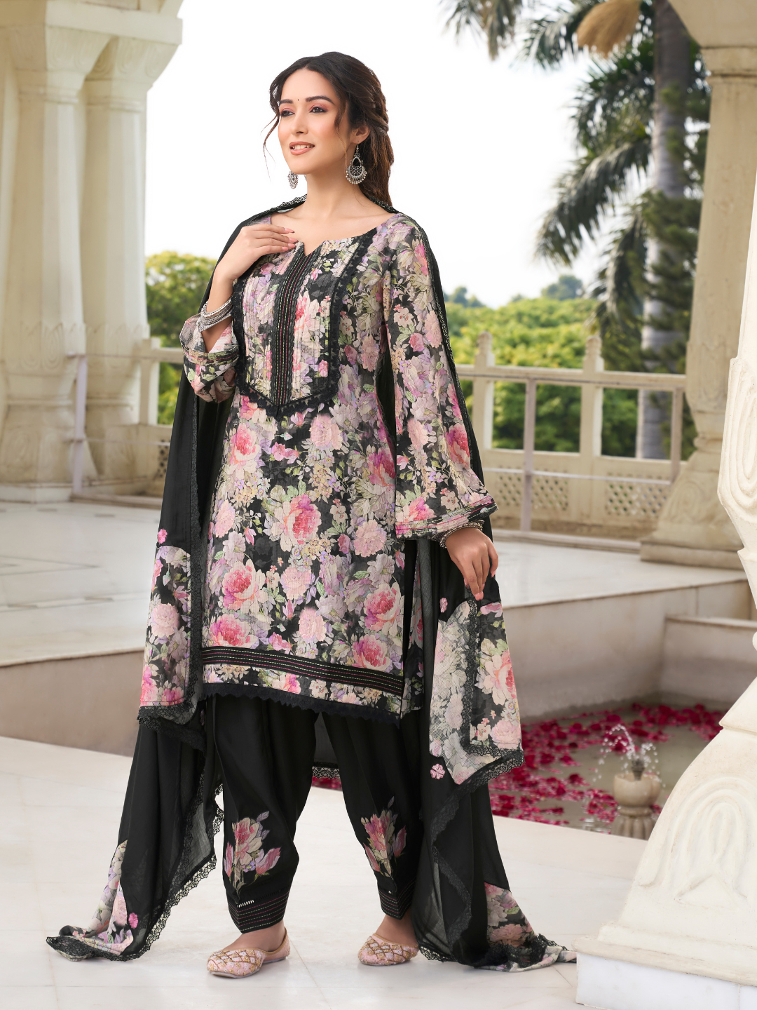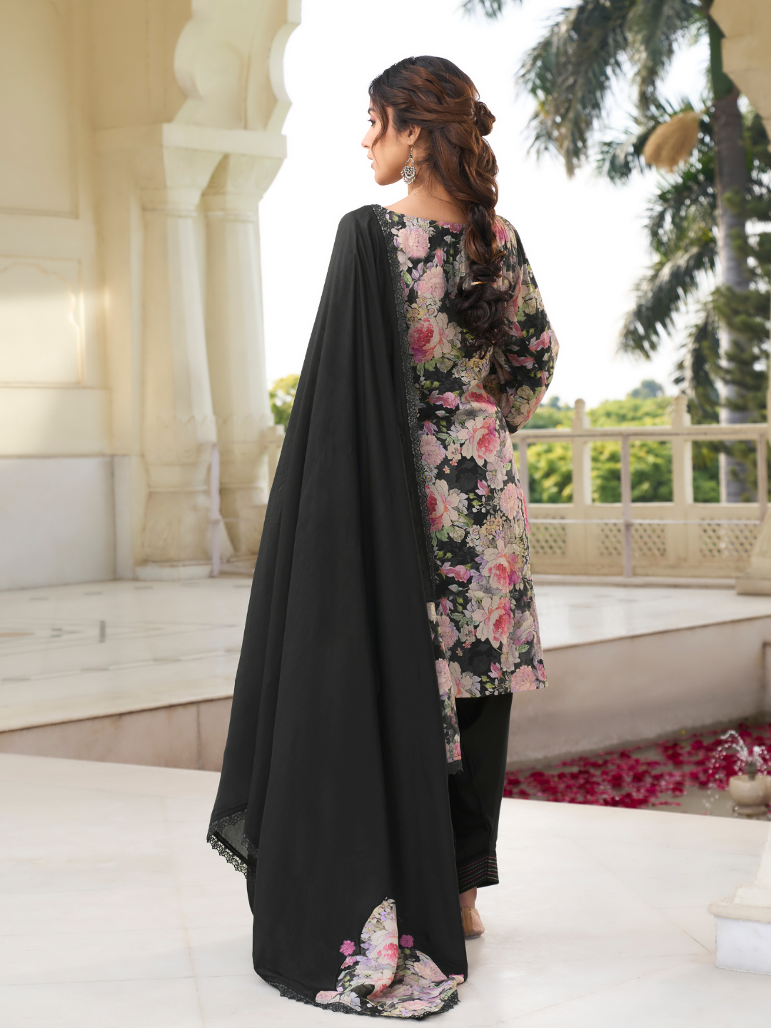 Dupatta: Muslin designer dupatta, finished with elegant lace work. (Length: 2.35 meters)