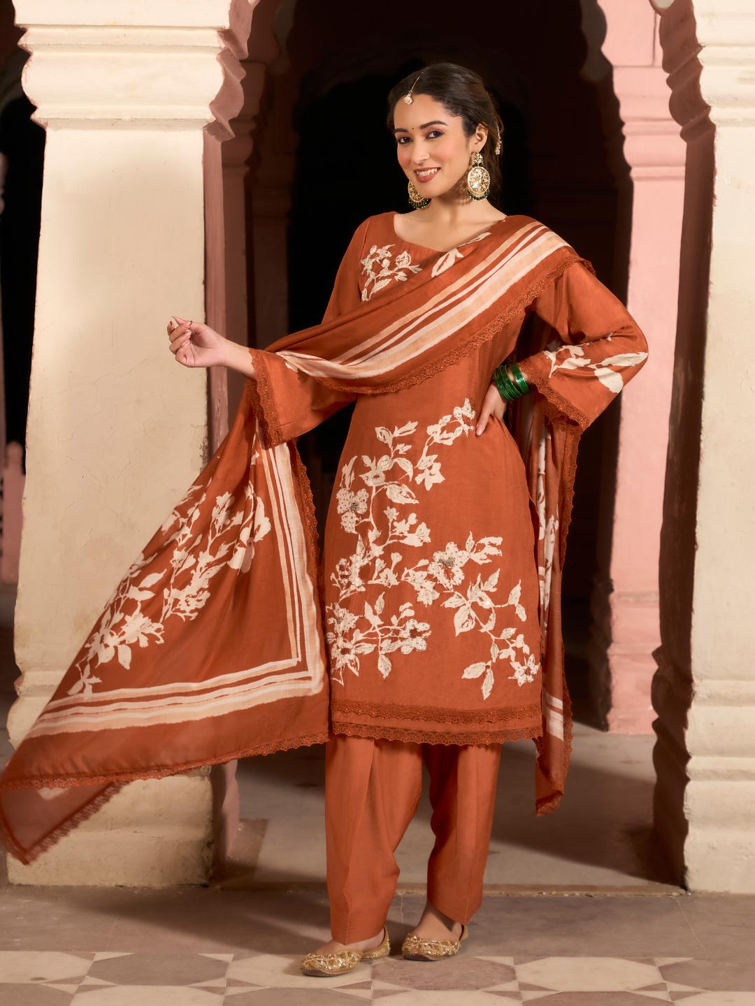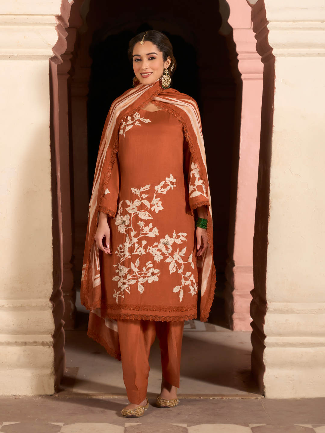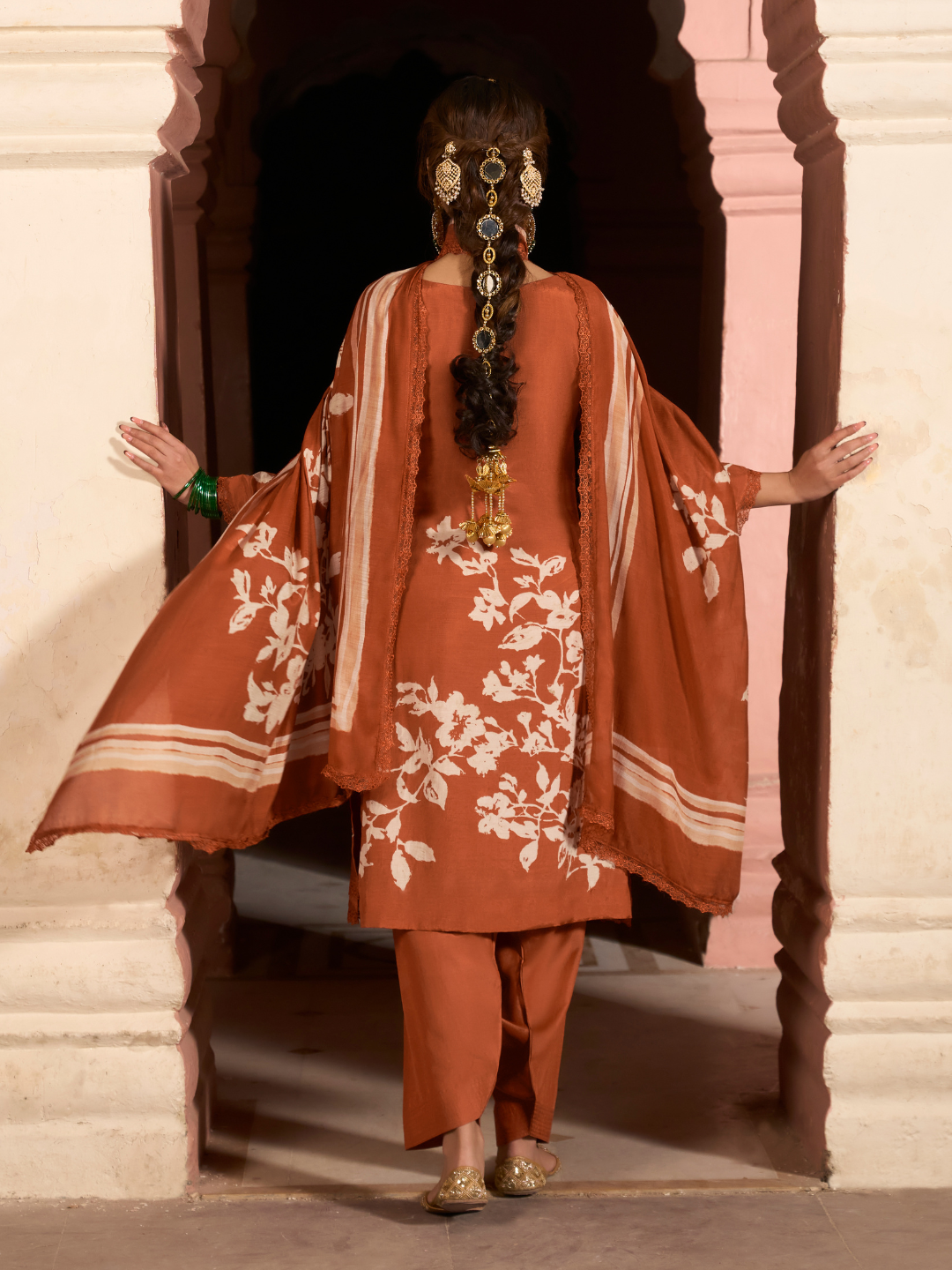 Dupatta: Muslin designer printed dupatta with lace. (Length: 2.40 meters)