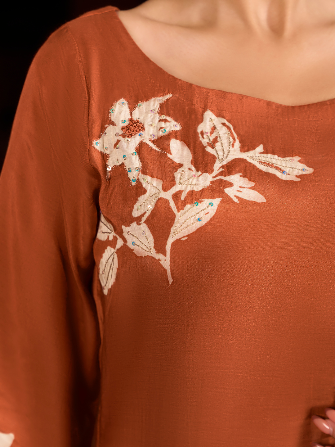 Shirt: Crafted from soft muslin, beautifully adorned with delicate hand embroidery. Print on the back with printed sleeves. (Length: 2.50 meters)