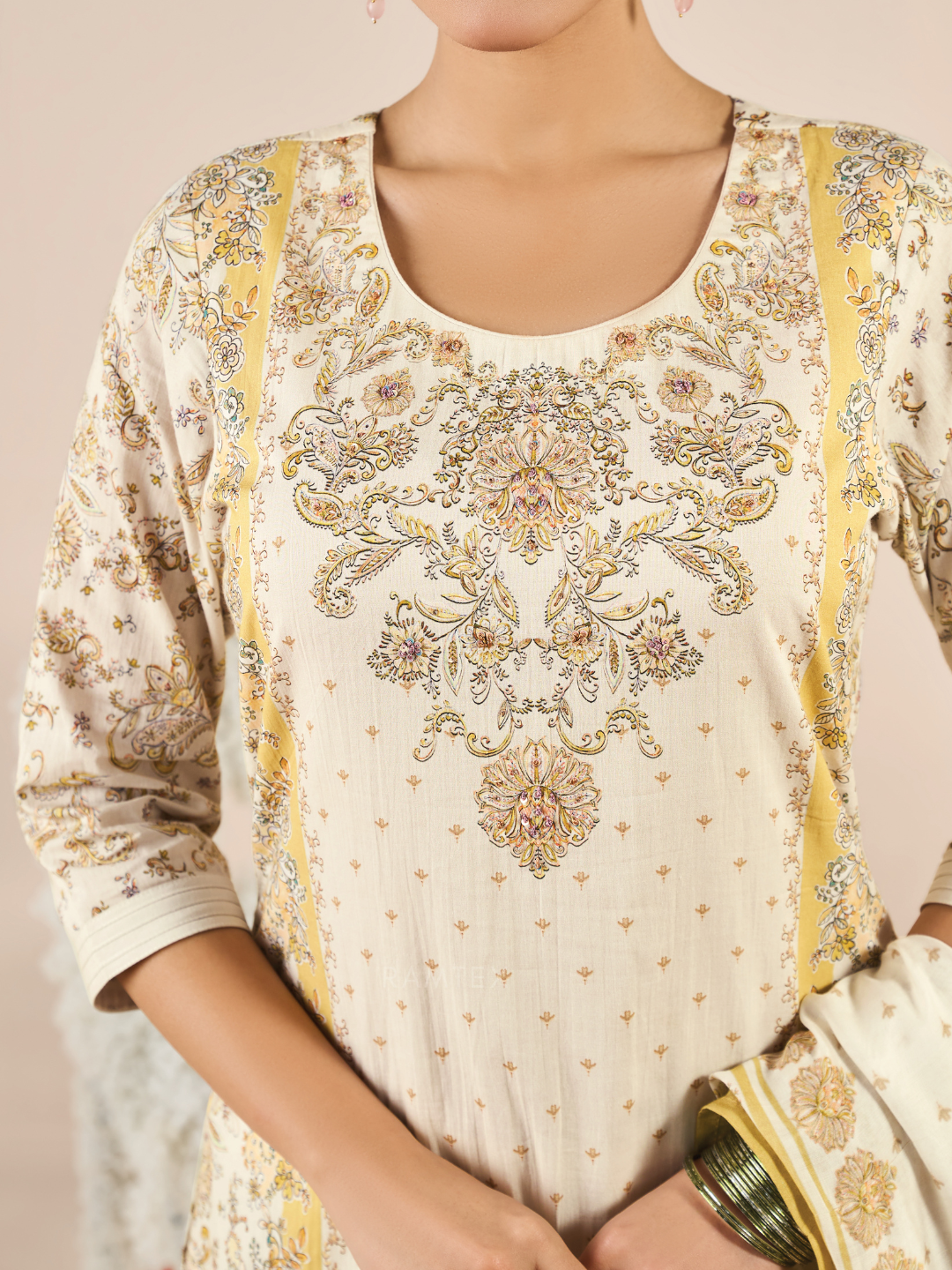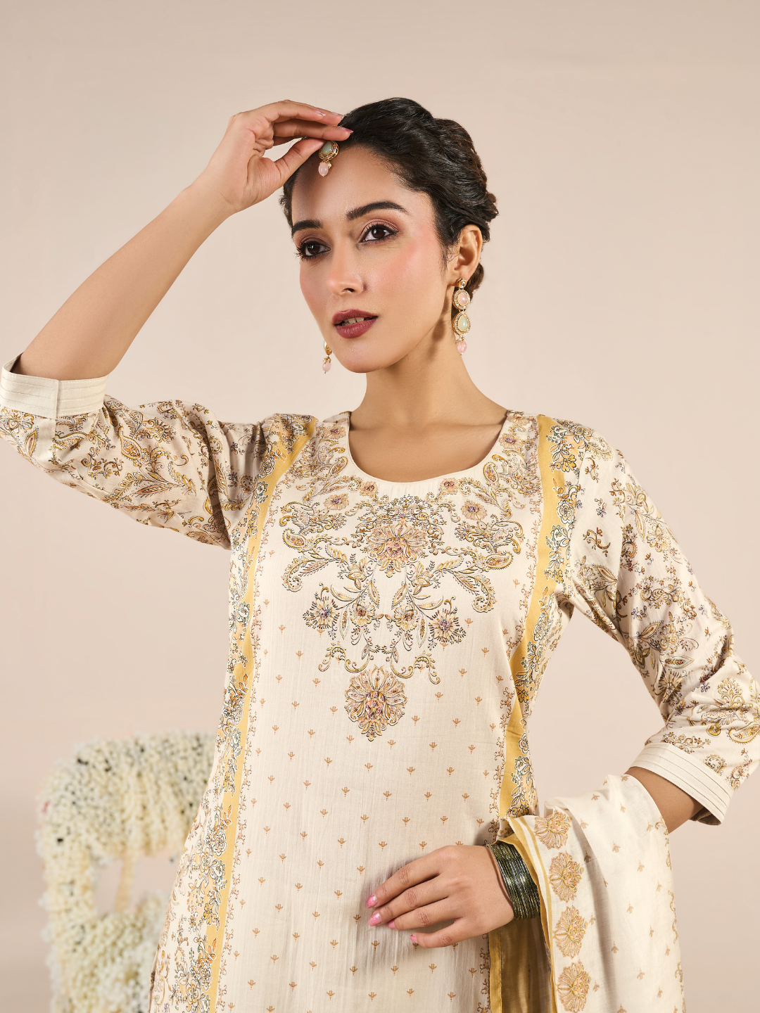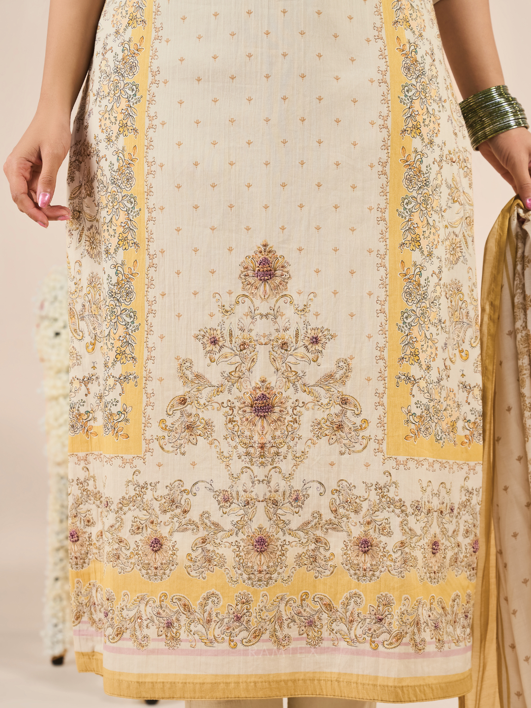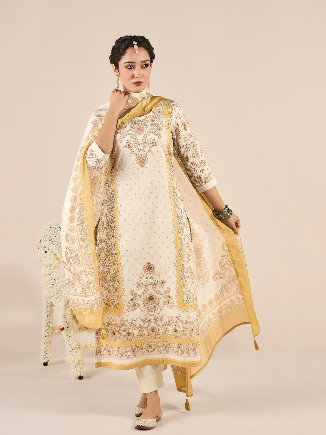 Dupatta: Muslin printed designer dupatta finished with delicate all side lace.(Length: 2.50 meters)