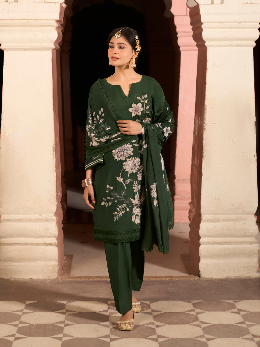Dupatta: Muslin designer printed dupatta with lace. (Length: 2.40 meters)