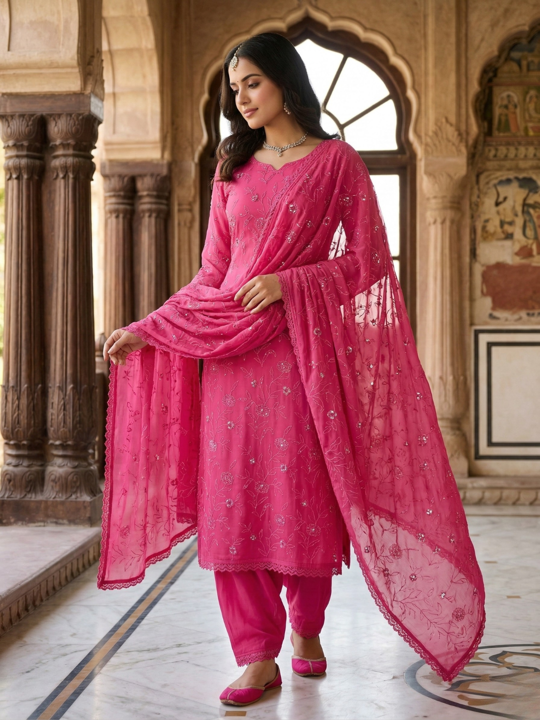 Dupatta: Designer organza embroidered dupatta , adding a stylish and statement-making finish to the ensemble (Length: 2.35 meters)
