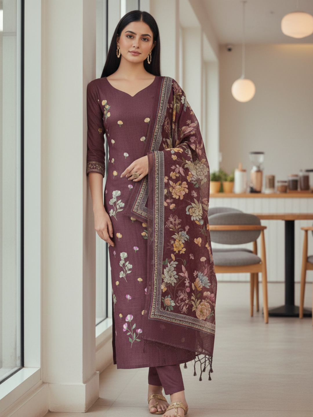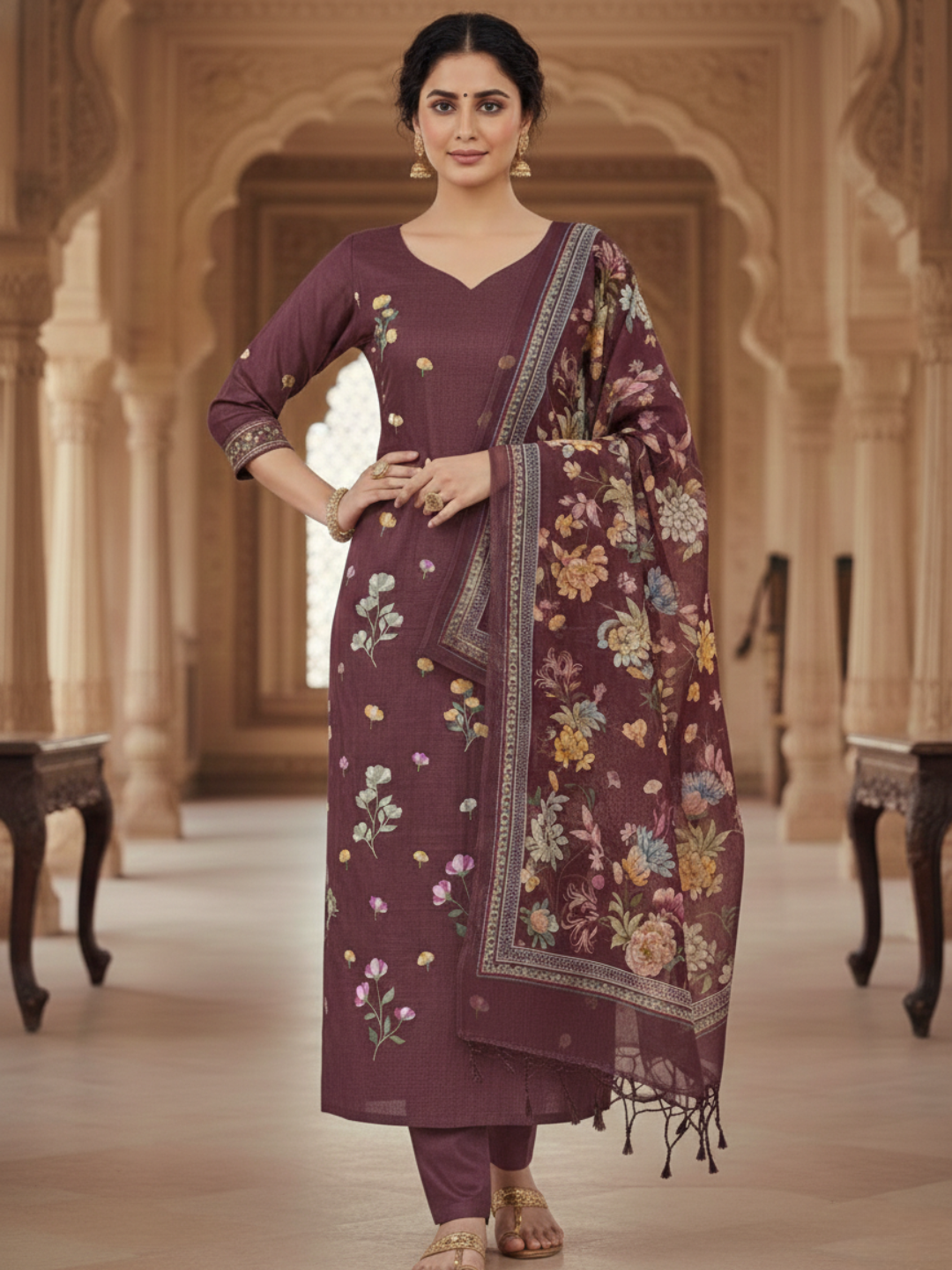 Bottom: Smooth plain crepe bottom in a matching tone for comfort and elegance.(Length: 2.75 meters)