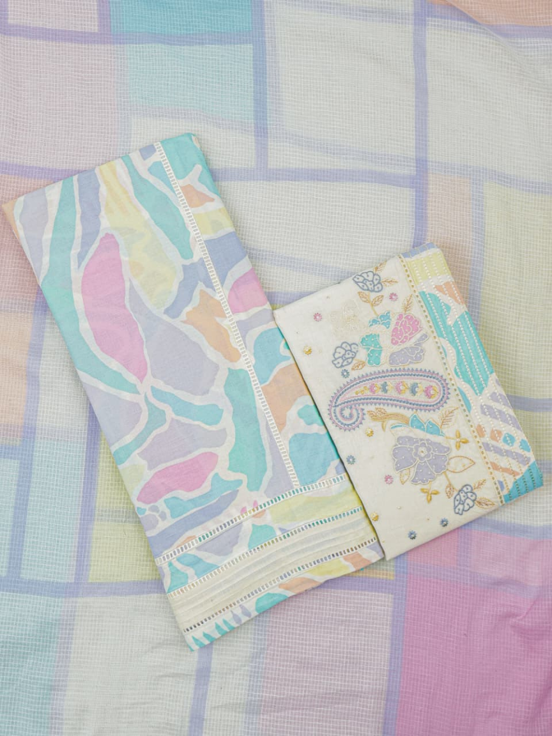 Bottom: Embroidered matching linen fabric offering a smooth fall and comfortable drape. (Length: 2.75 meters)