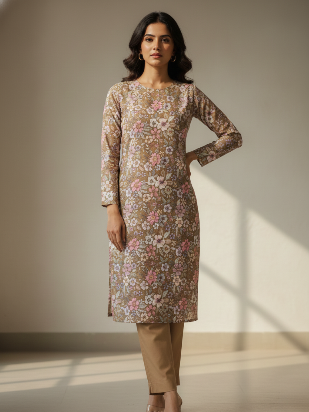 Shirt: Cottswool fabric shirt with elegant digital print for a refined look. (Length: 2.50 meters)