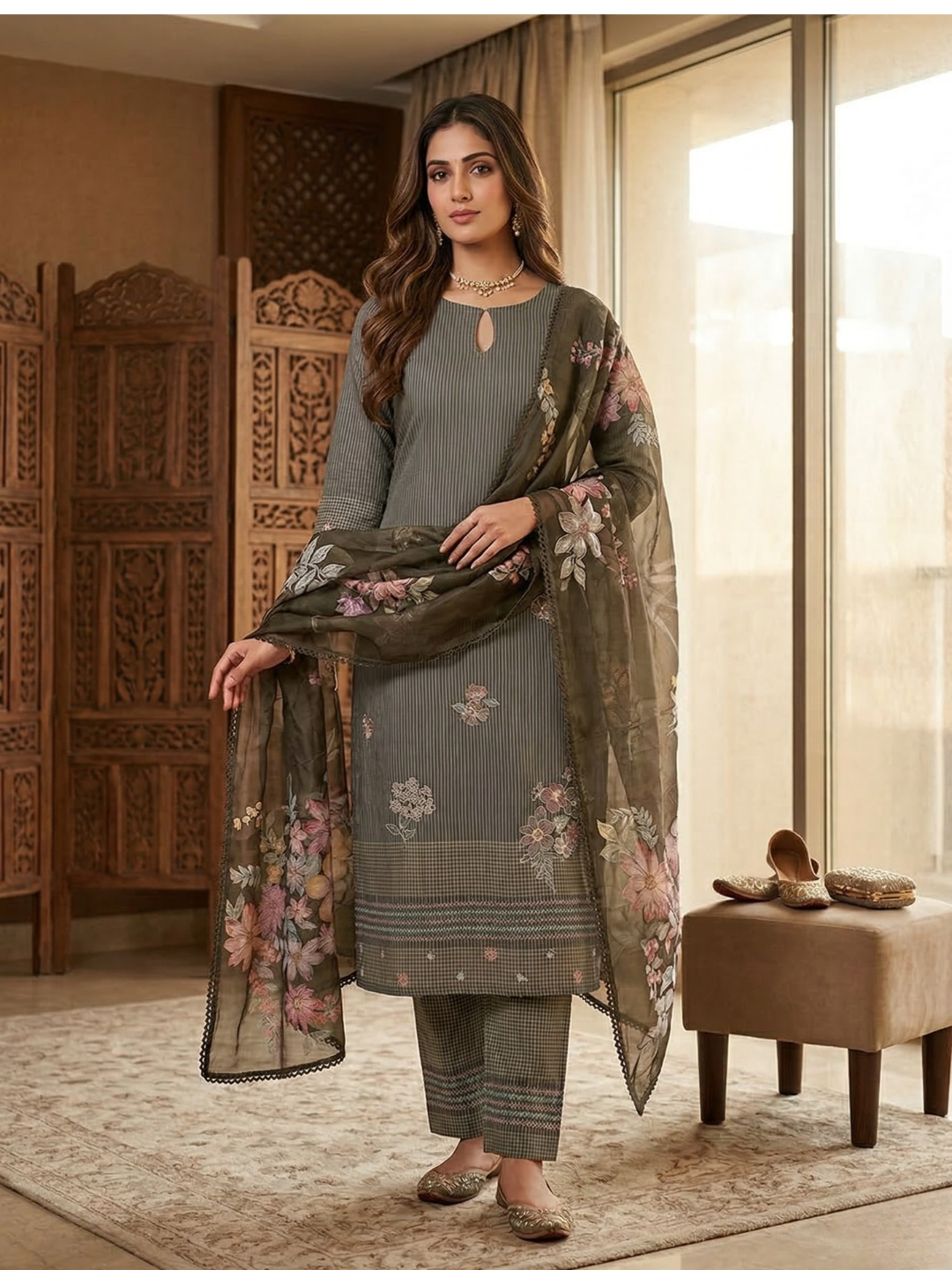 Dupatta: Designer muslin printed dupatta , adding a stylish and statement-making finish to the ensemble (Length: 2.35 meters)