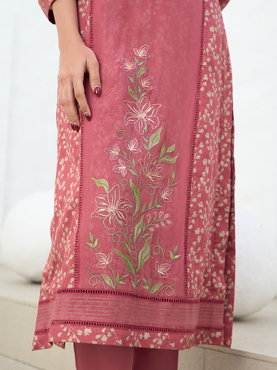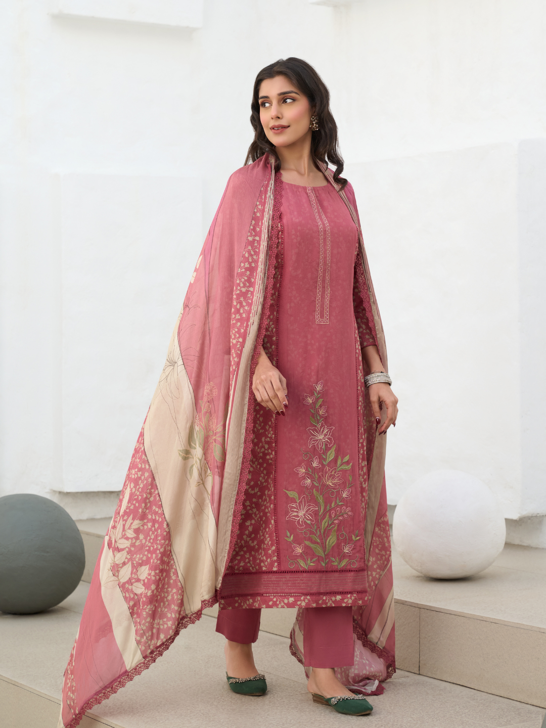 Dupatta: Printed chinon dupatta finished with delicate lace detailing, adding an elegant touch to the ensemble.(Length: 2.35 meters)