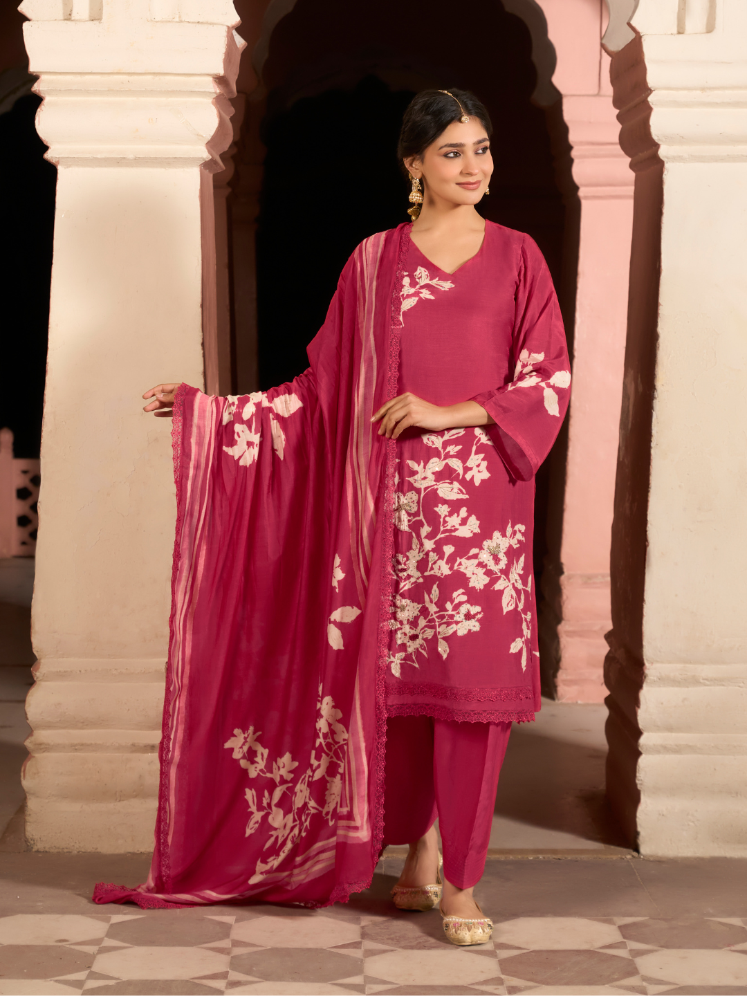 Dupatta: Muslin designer printed dupatta with lace. (Length: 2.40 meters)