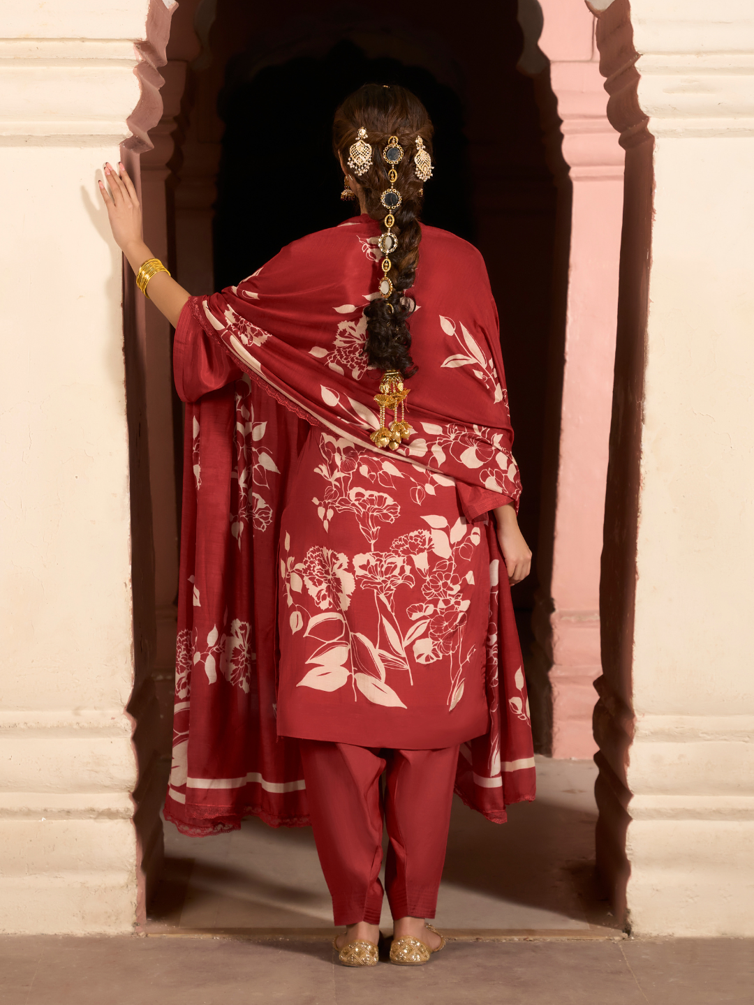 Shirt: Crafted from soft muslin, beautifully adorned with delicate hand embroidery. Print on the back with printed sleeves. (Length: 2.50 meters)