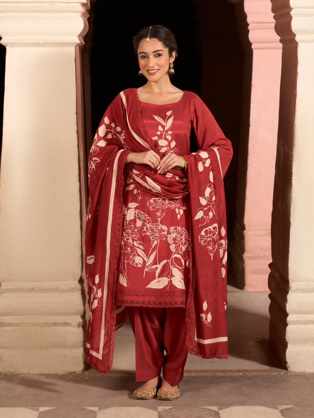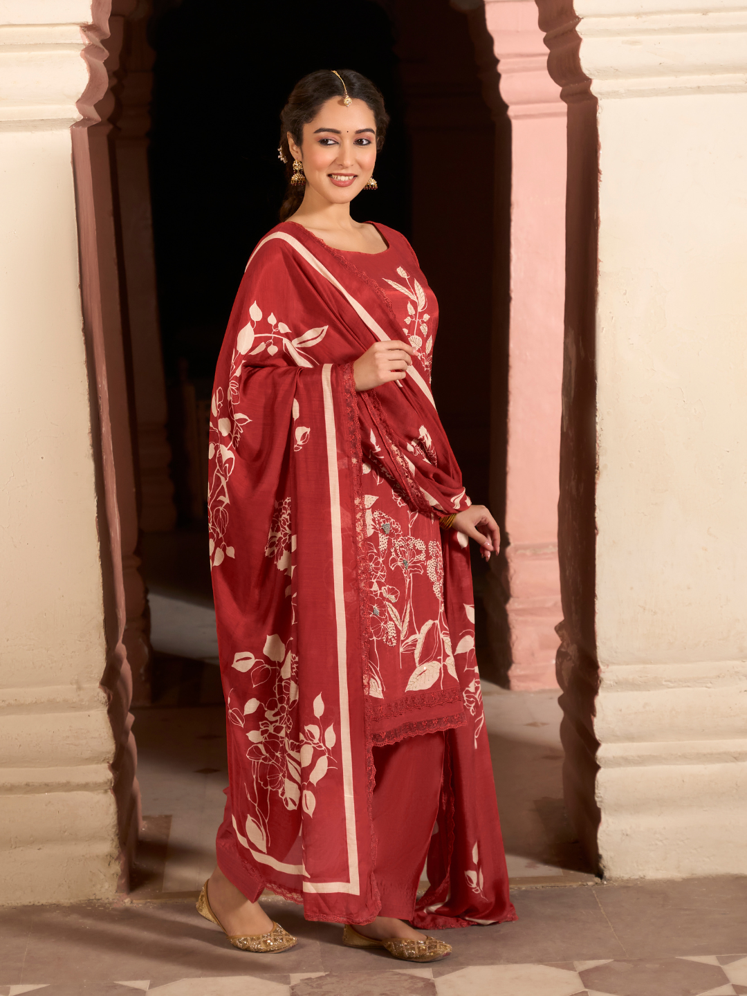 Dupatta: Muslin designer printed dupatta with lace. (Length: 2.40 meters)