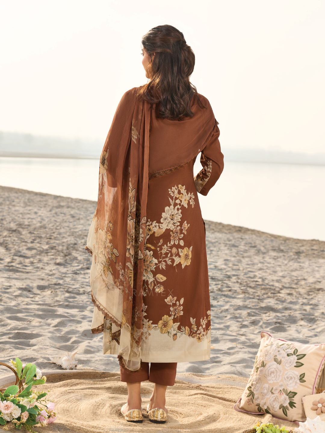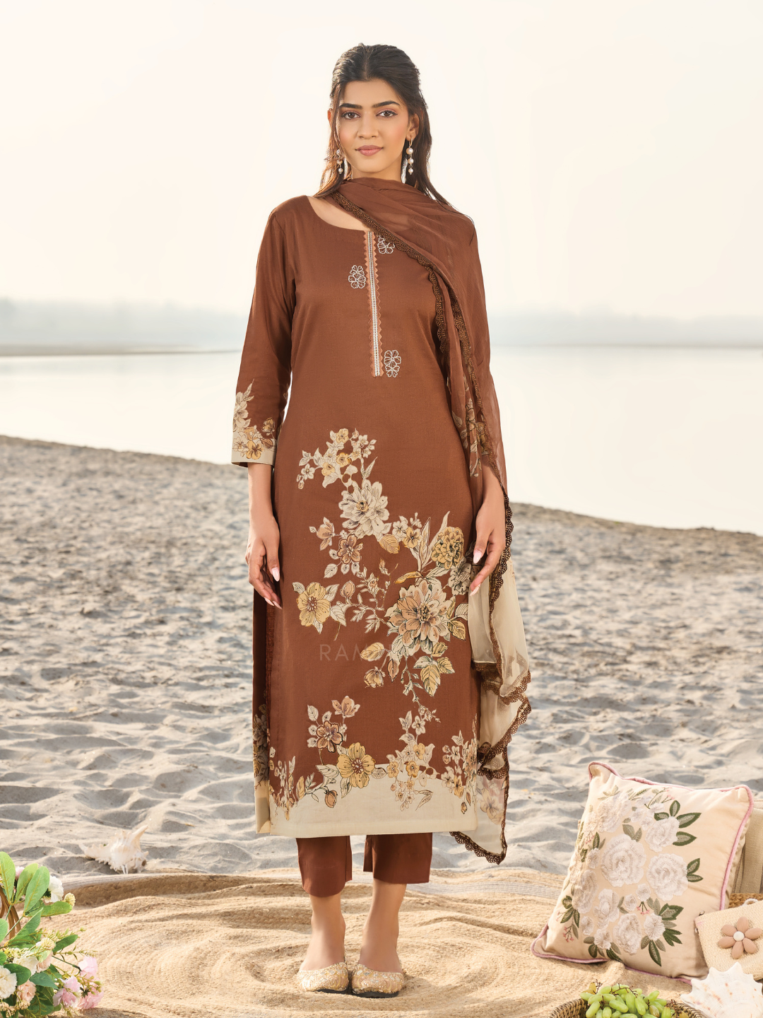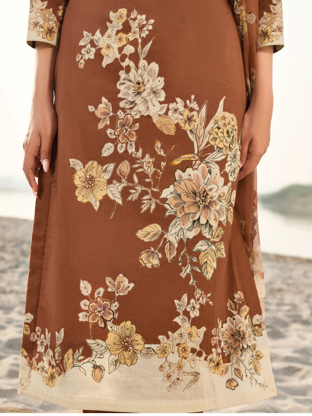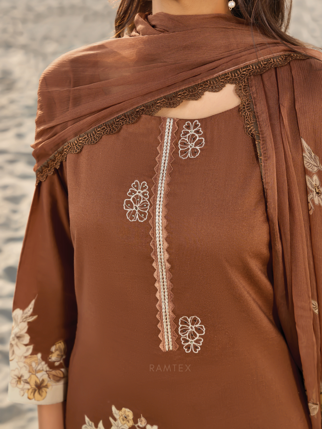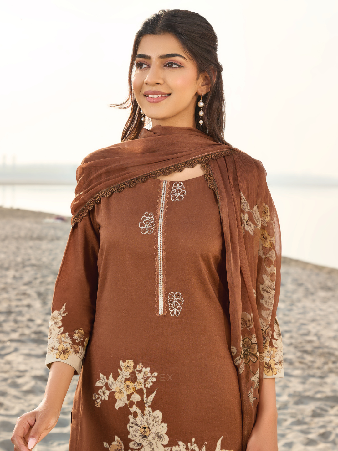 Dupatta: Chiffon printed designer dupatta finished with delicate all side lace. (Length: 2.50 meters)