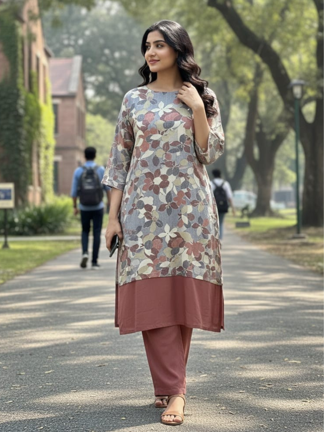 Bottom: Plain matching crepe bottom for a sleek and comfortable fit. (Length: 2.50 meters)
