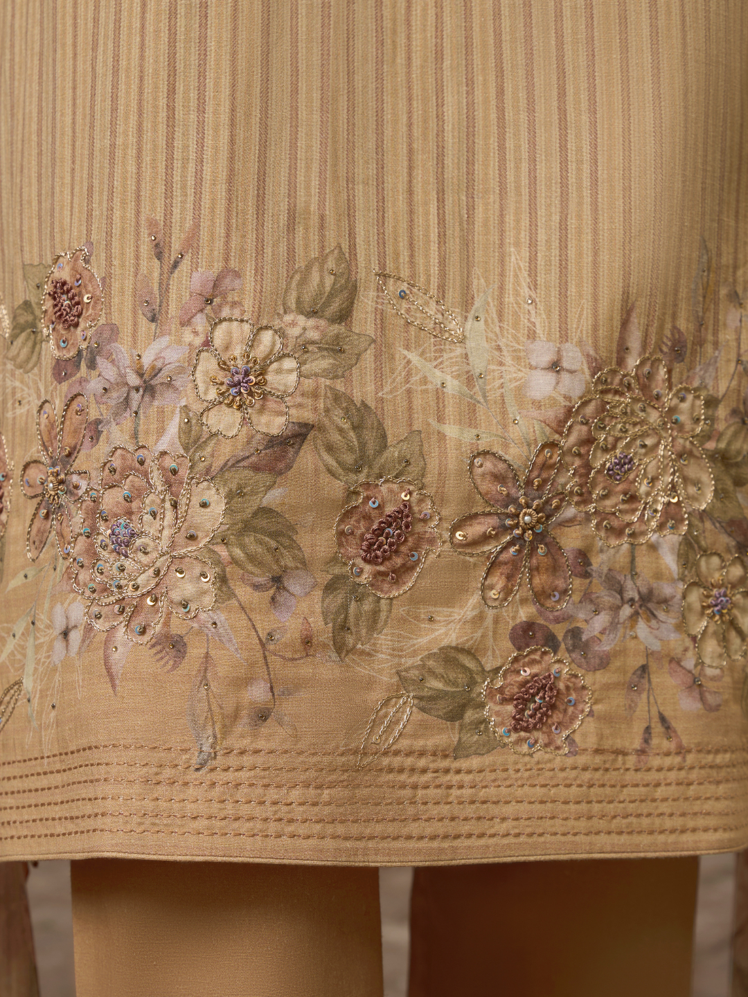 Shirt: Linen printed shirt beautifully adorned with embroidery on the front, and print on the back. (Length: 2.50 meters)
