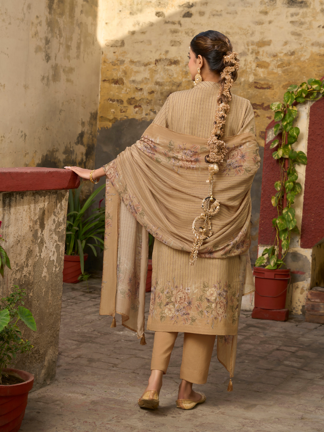 Dupatta: Muslin printed dupatta finished with delicate designer lace work. (Length: 2.40 meters)