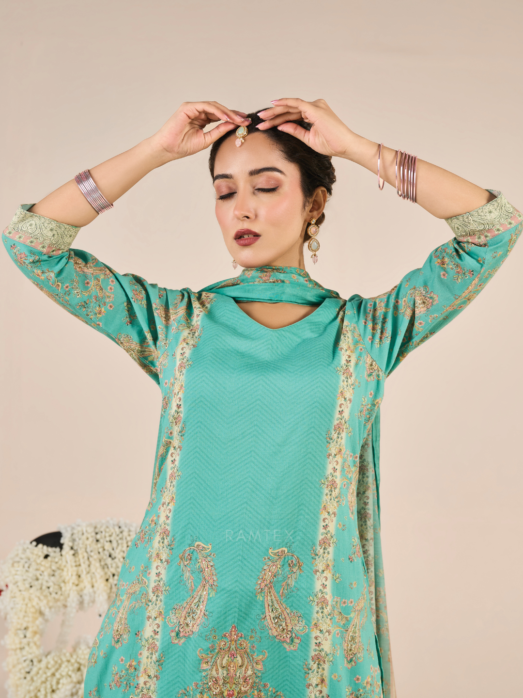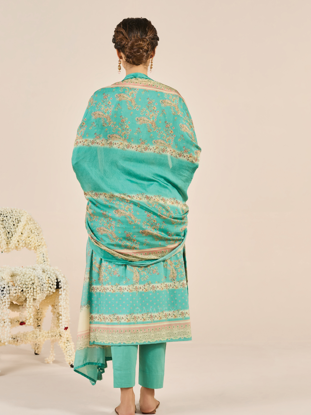 Shirt: Aircool cotton beautifully printed and enhanced with fine, delicate embroidery for a refined look. Print on the back. (Length: 2.50 meters)