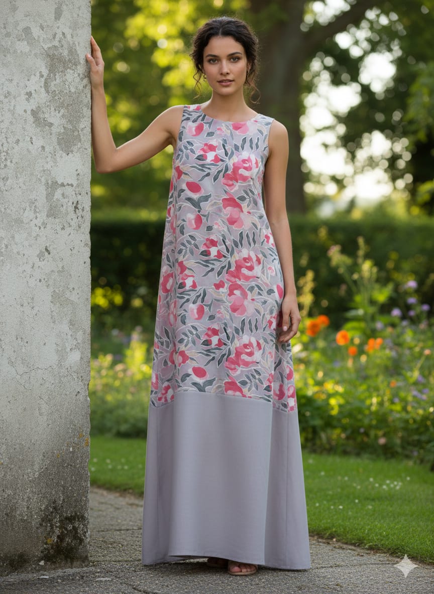 Grey Cotton Matching Printed 2-Piece Suit Set