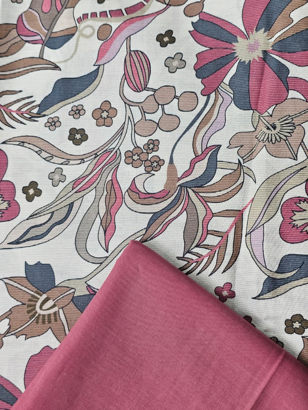 Raspberry Pink Printed Muslin Embroidered Unstitched Suit Set