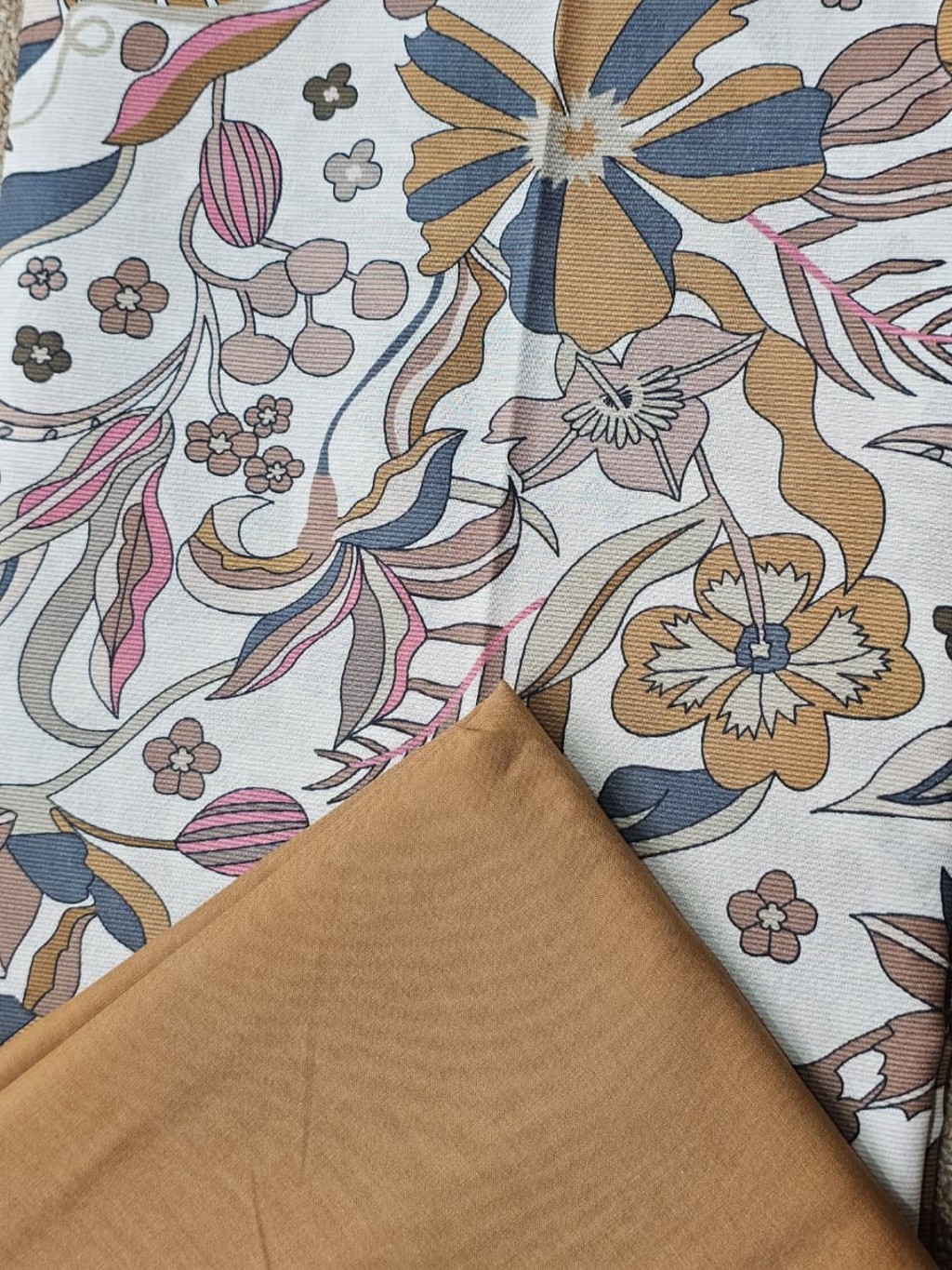 Burnt Tangerine Printed Muslin Embroidered Unstitched Suit Set