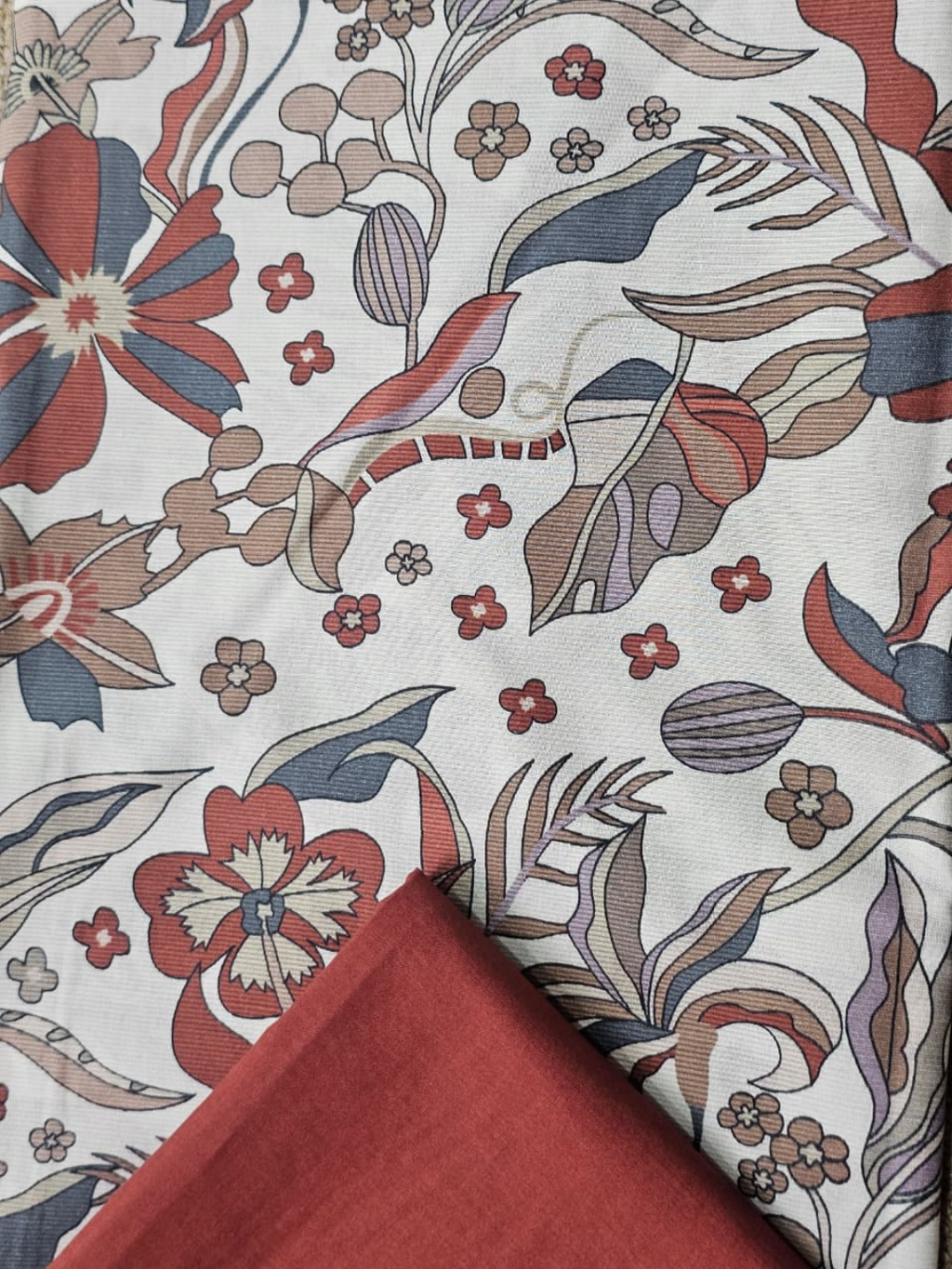 Cherry Rust Cotton Matching Printed 2-Piece Suit Set