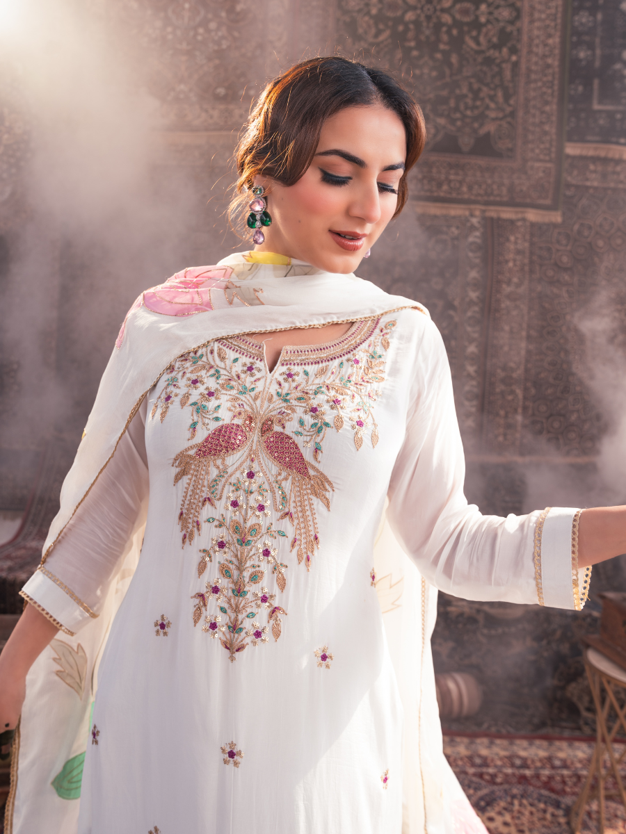 Sajjda Organza Embroidered Party Wear Unstitched Suit Set