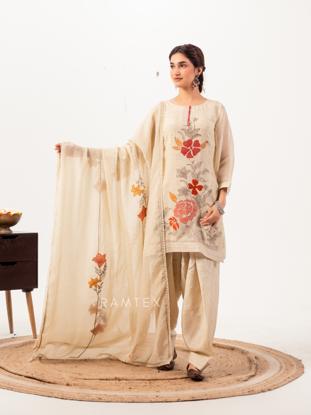 Muslin Printed Hand Embroidered Unstitched Suit Set