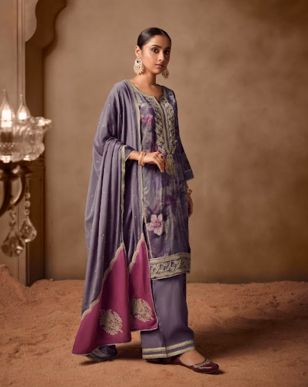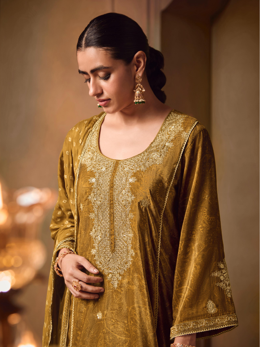 Miraj Printed Velvet With Golden Embroidered Unstitched Suit Set