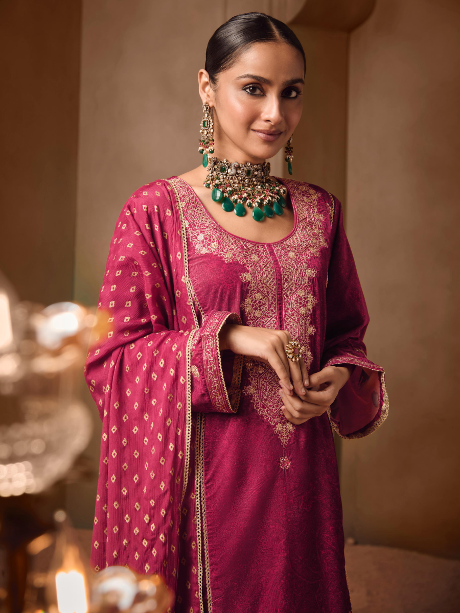 Royal Ruby Kashmiri Print Winter Wear Unstitched Suit Set with Shawl