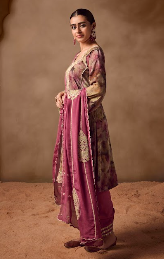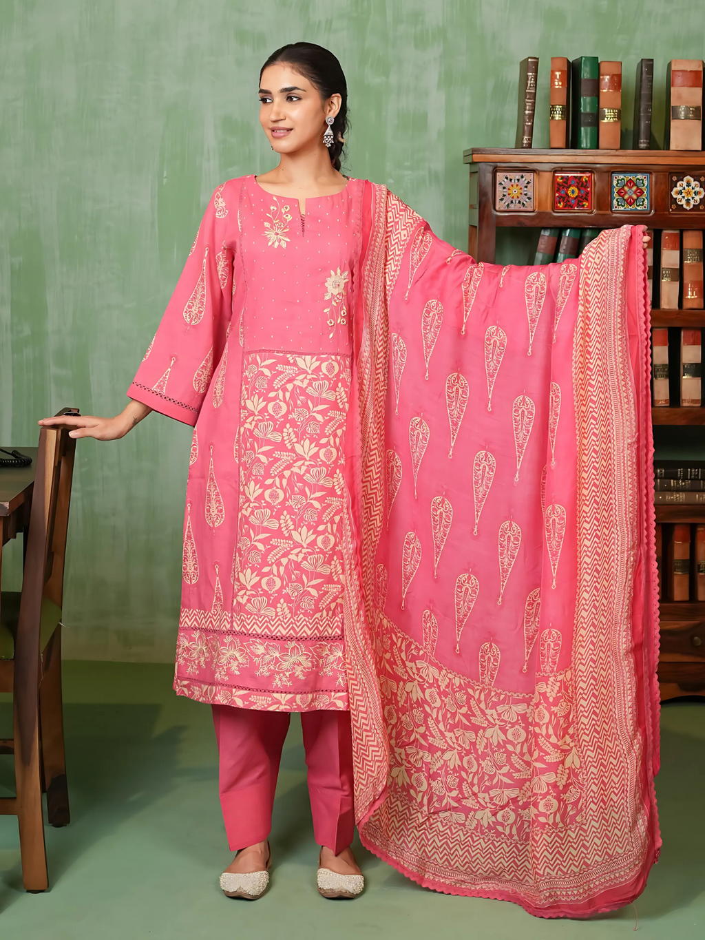 Dusky Pink Kashmiri Print Winter Wear Unstitched Suit Set with Shawl