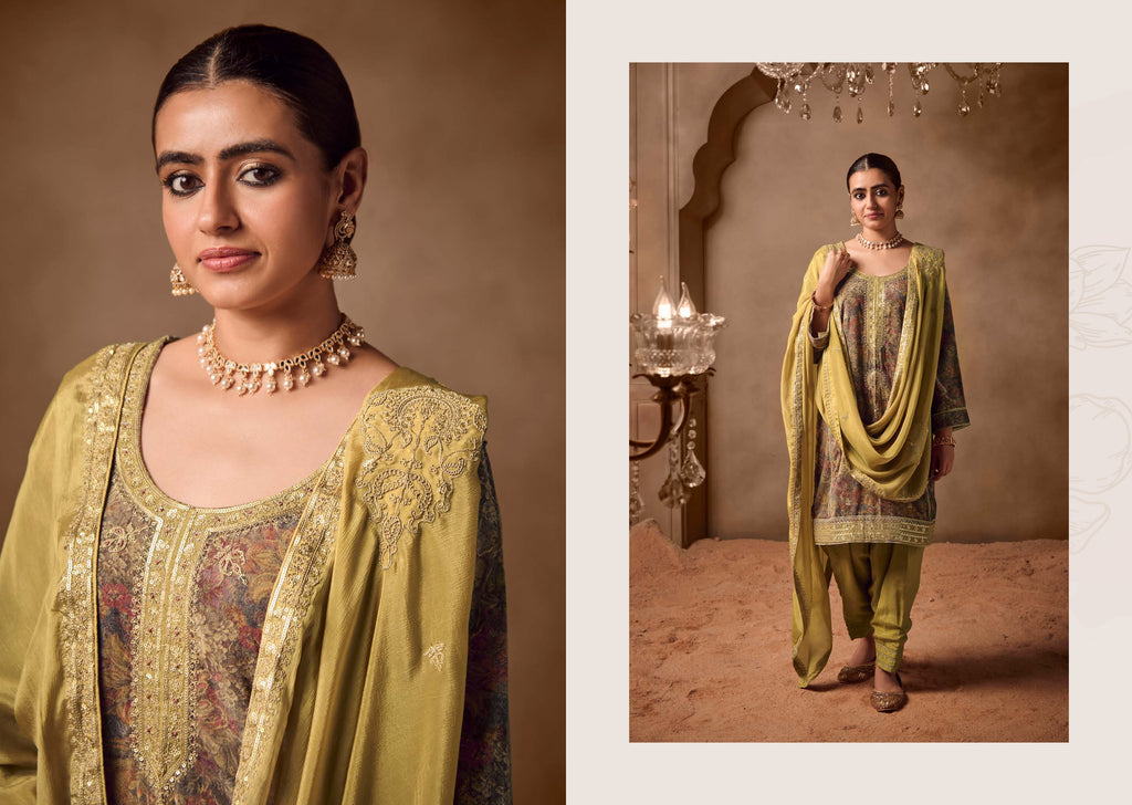 Lishkara Printed Velvet With Golden Embroidered Unstitched Suit Set
