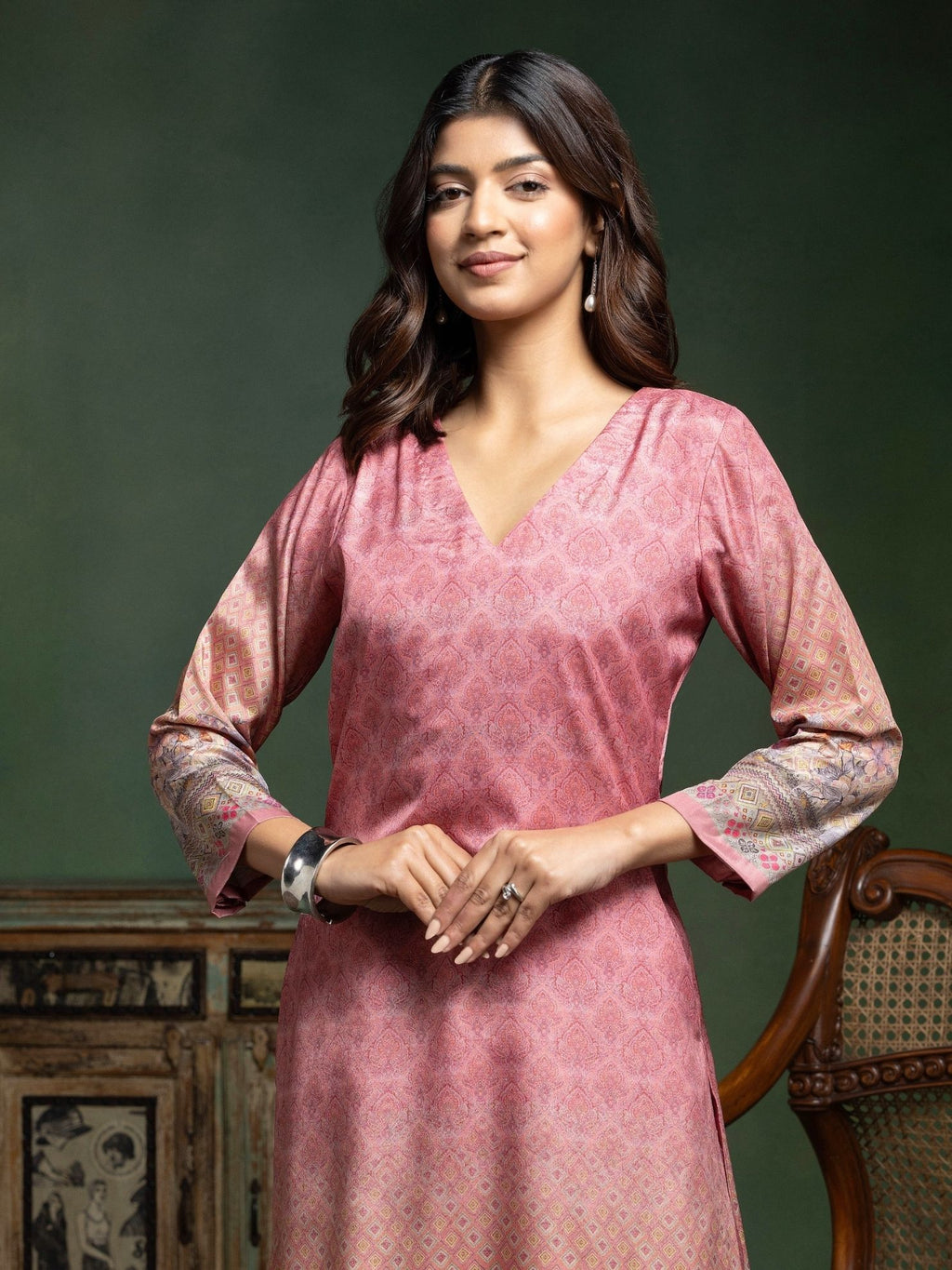 Unstitched Linen Suit Set with Digital Print & Hand Embroidery