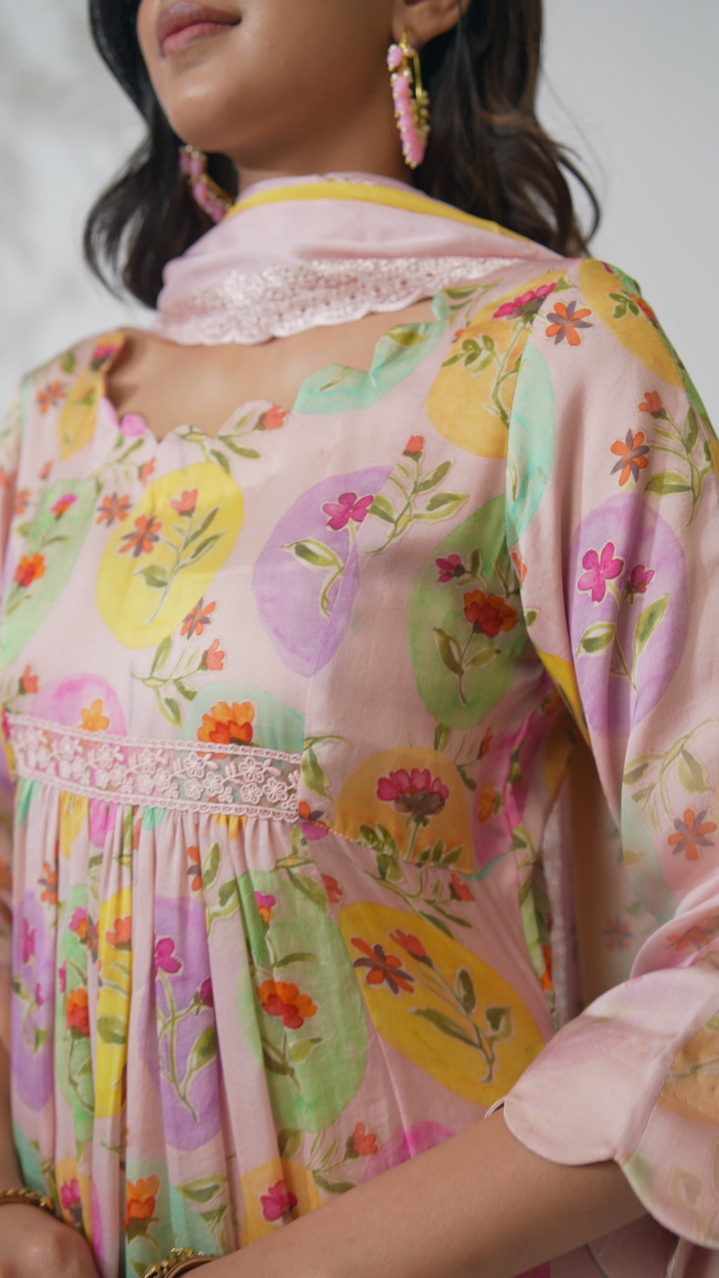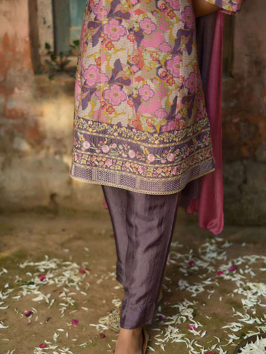 Pink Silk Printed Stitched Suit Set with Hand & Aari work