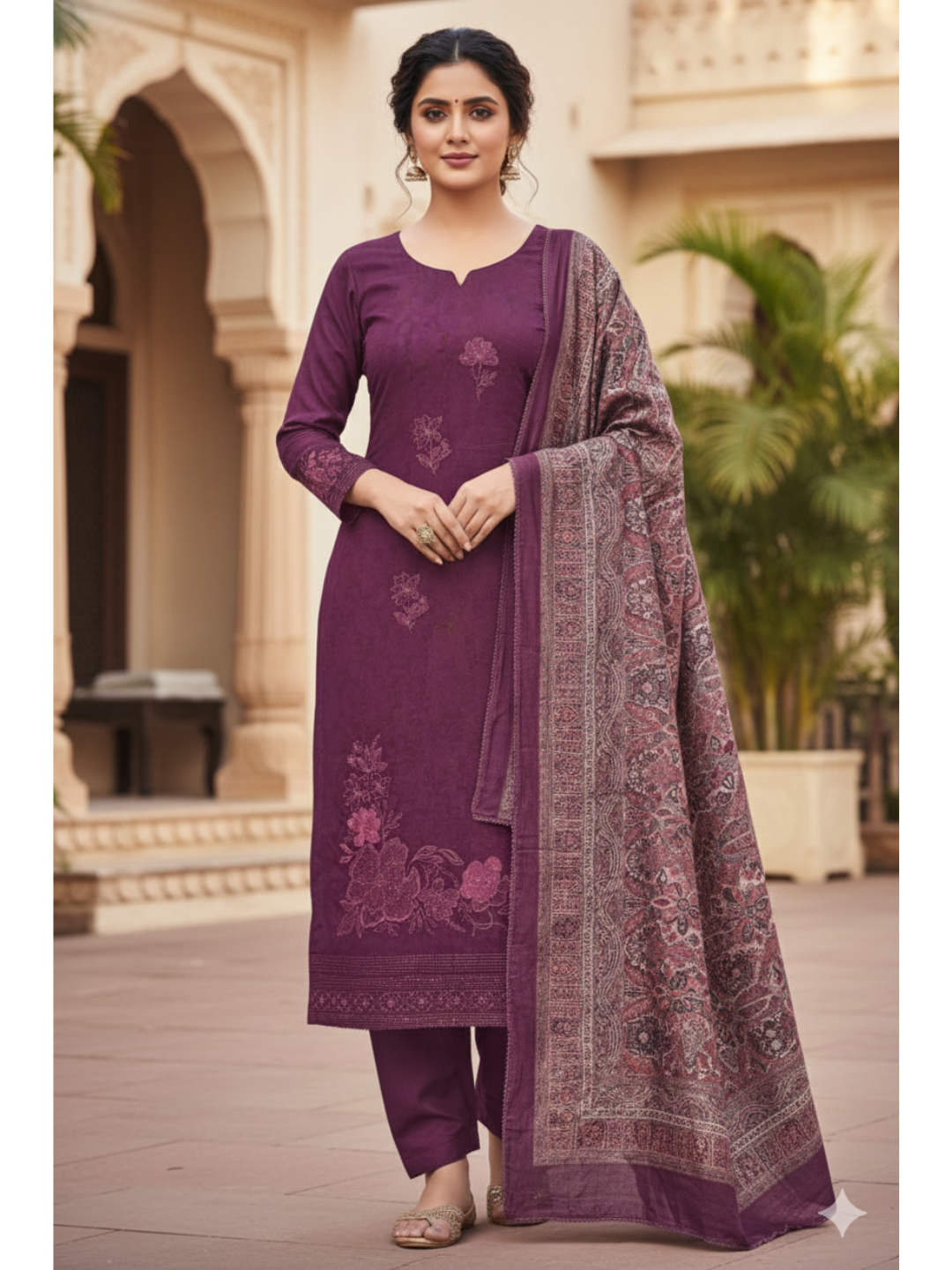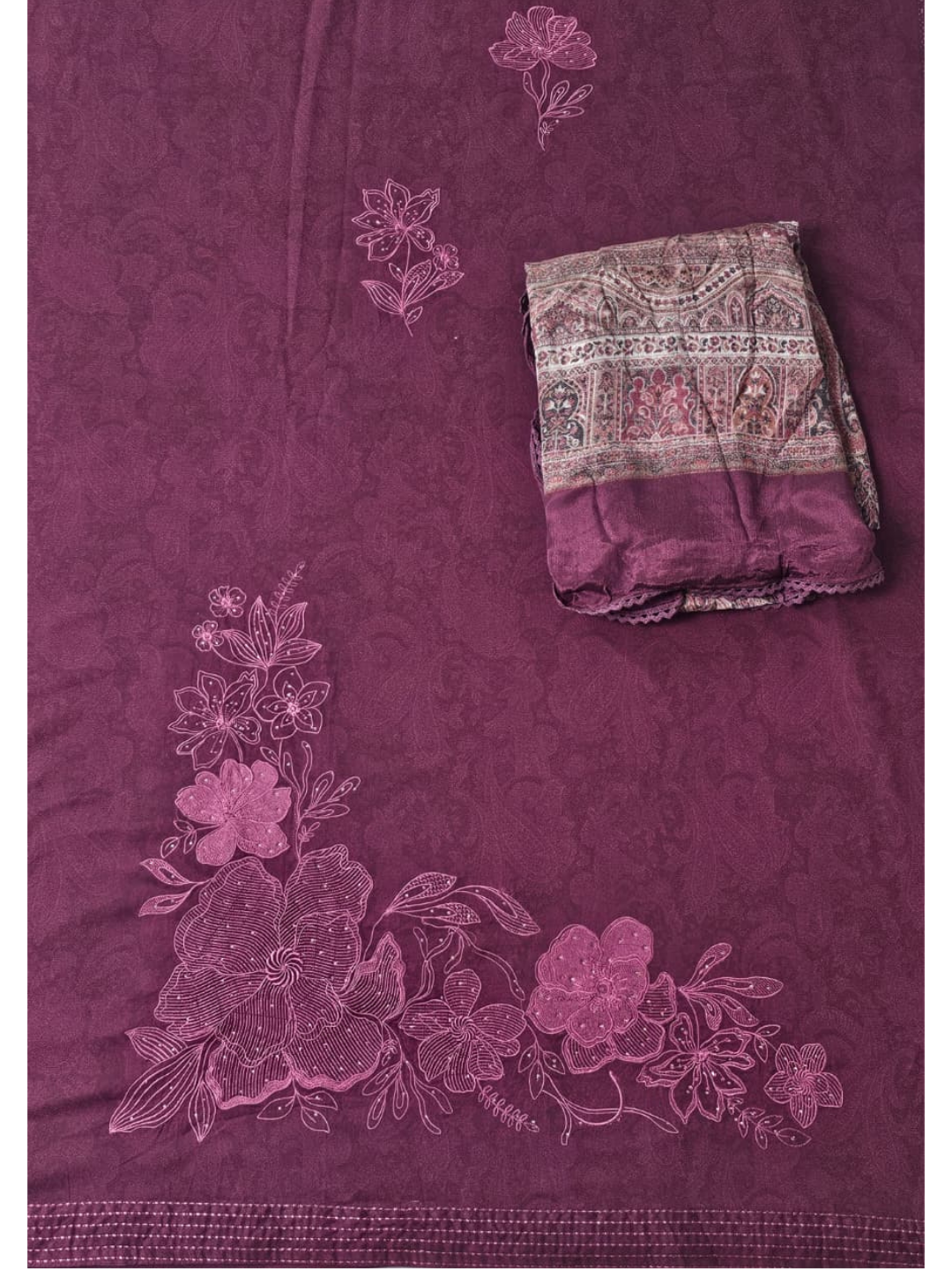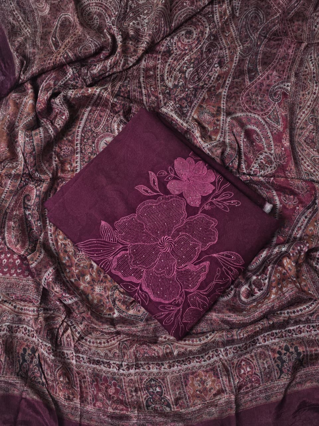 Shirt: Crafted from soft printed cottswool, beautifully adorned with hand delicate embroidery, enhanced by an elegant back print. (Length: 2.50 meters)