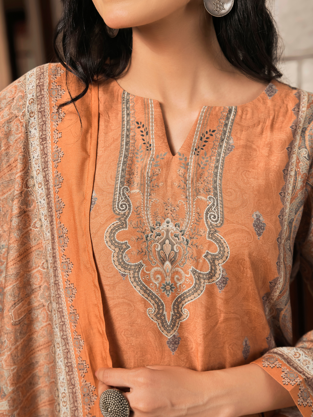Dupatta: Matching Kashmiri-style pashmina shawl dupatta with rich digital print, adding a warm and graceful touch. (Length: 2.60 meters)