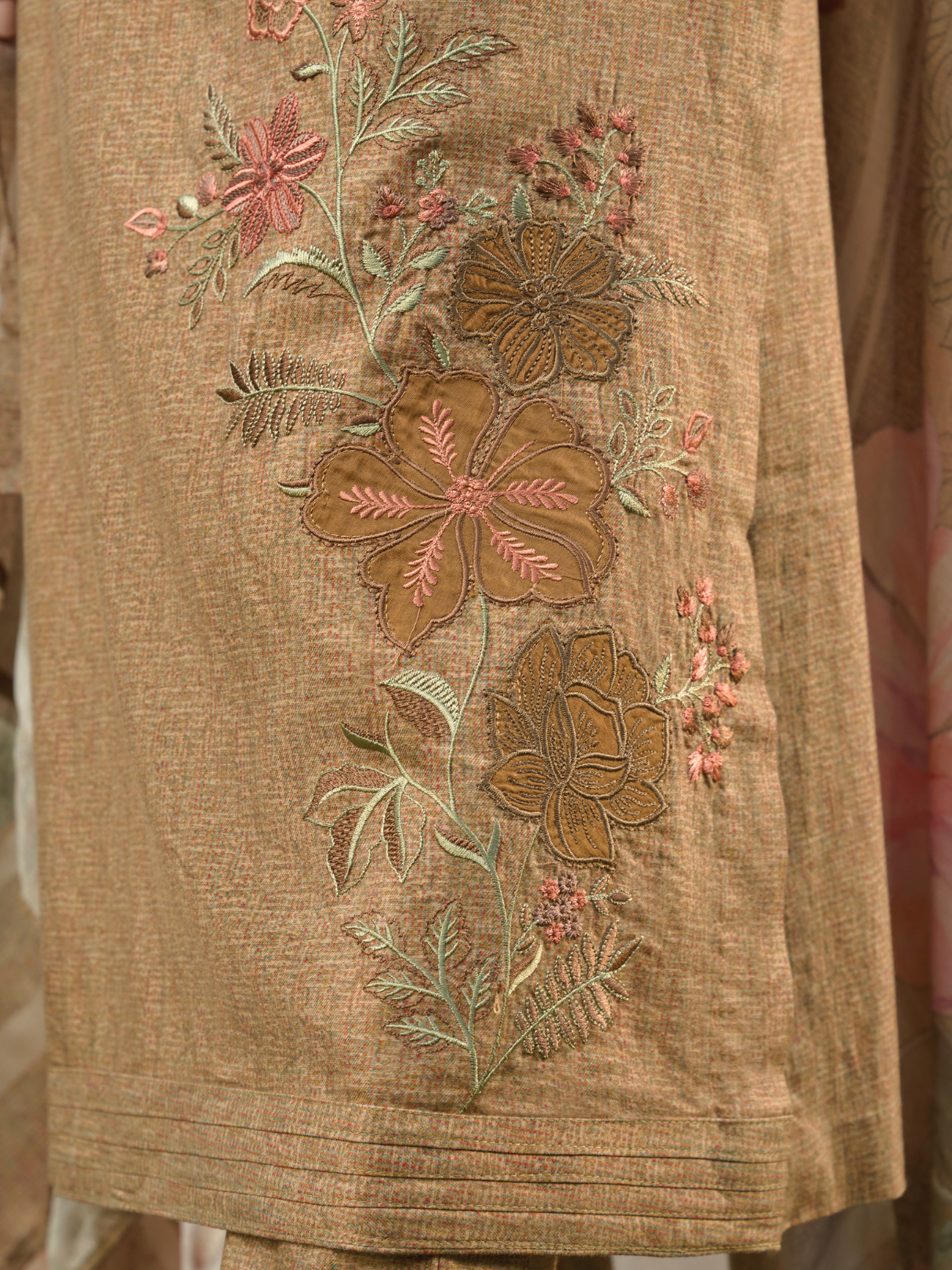 Shirt: Crafted from soft printed cottswool, beautifully adorned with patchwork and delicate embroidery, enhanced by an elegant back print. (Length: 2.50 meters)