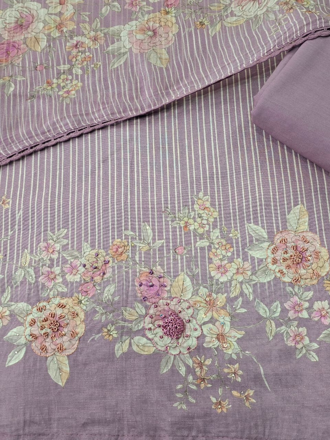 Shirt: Pure linen printed fabric beautifully adorned with embroidery. (Length: 2.50 meters)