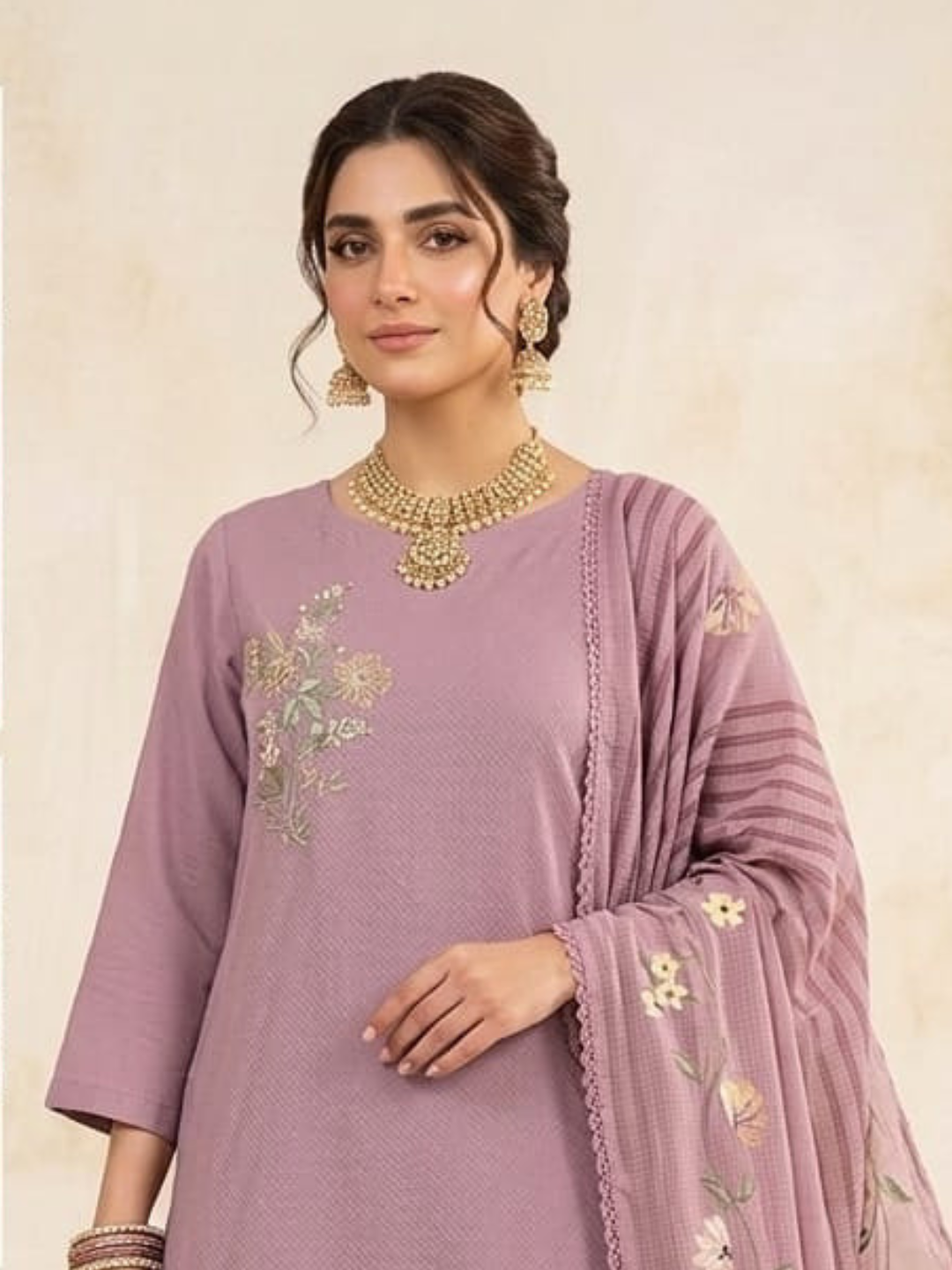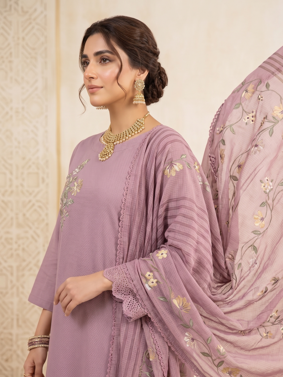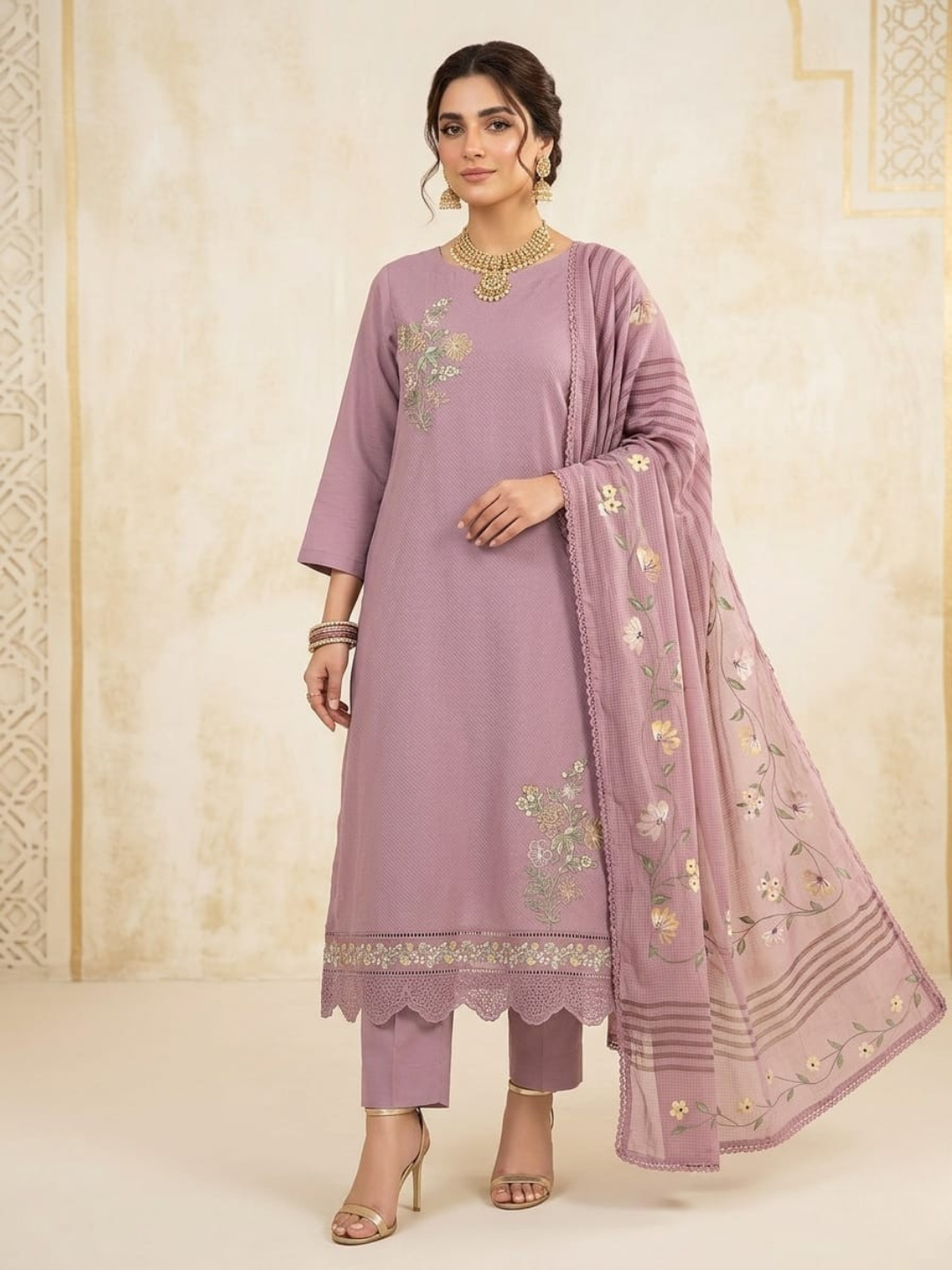 Shirt: Premium cotton shirt featuring elegant highlighted with embroidery. (Length: 2.50 meters)