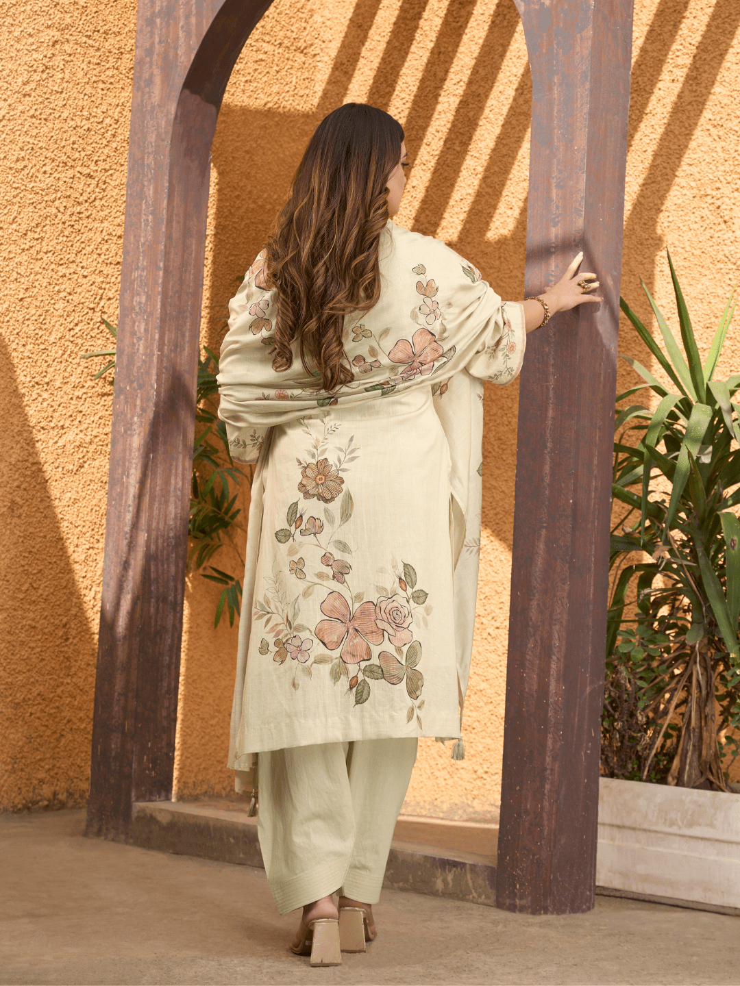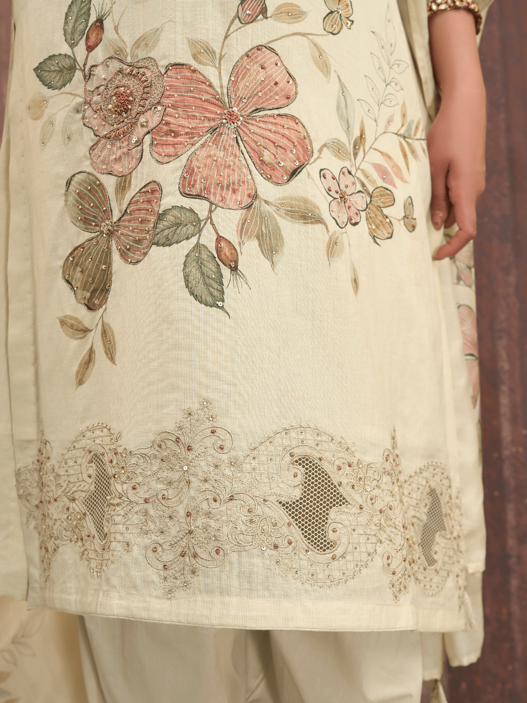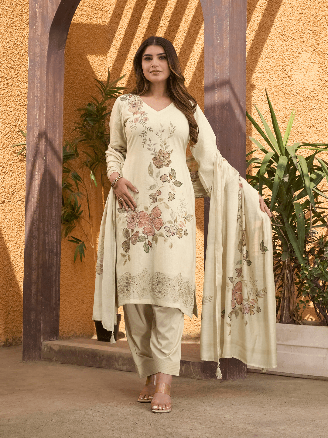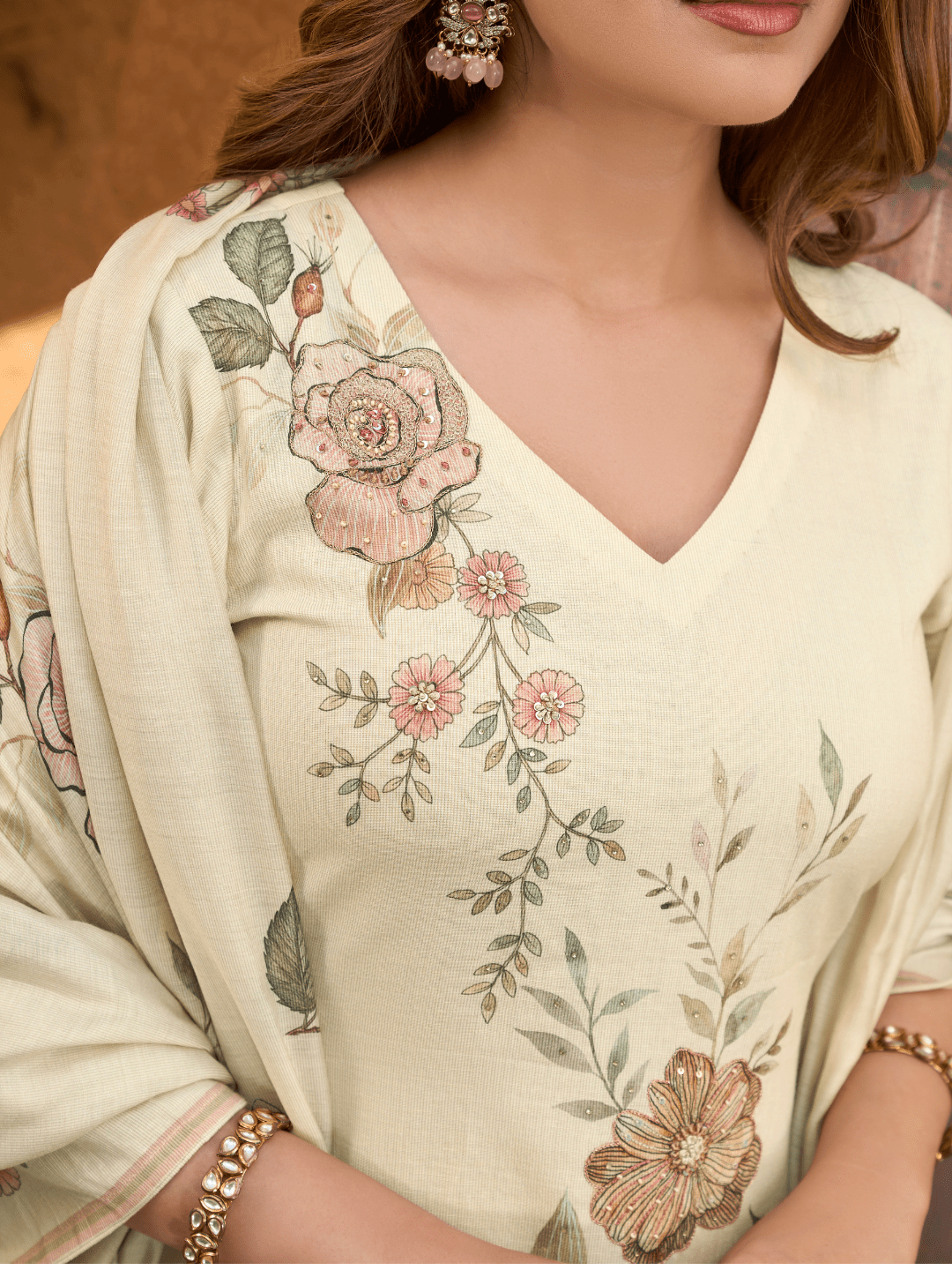 Bottom: Coordinated linen plain bottom designed for all-day comfort. (Length: 2.75 meters)