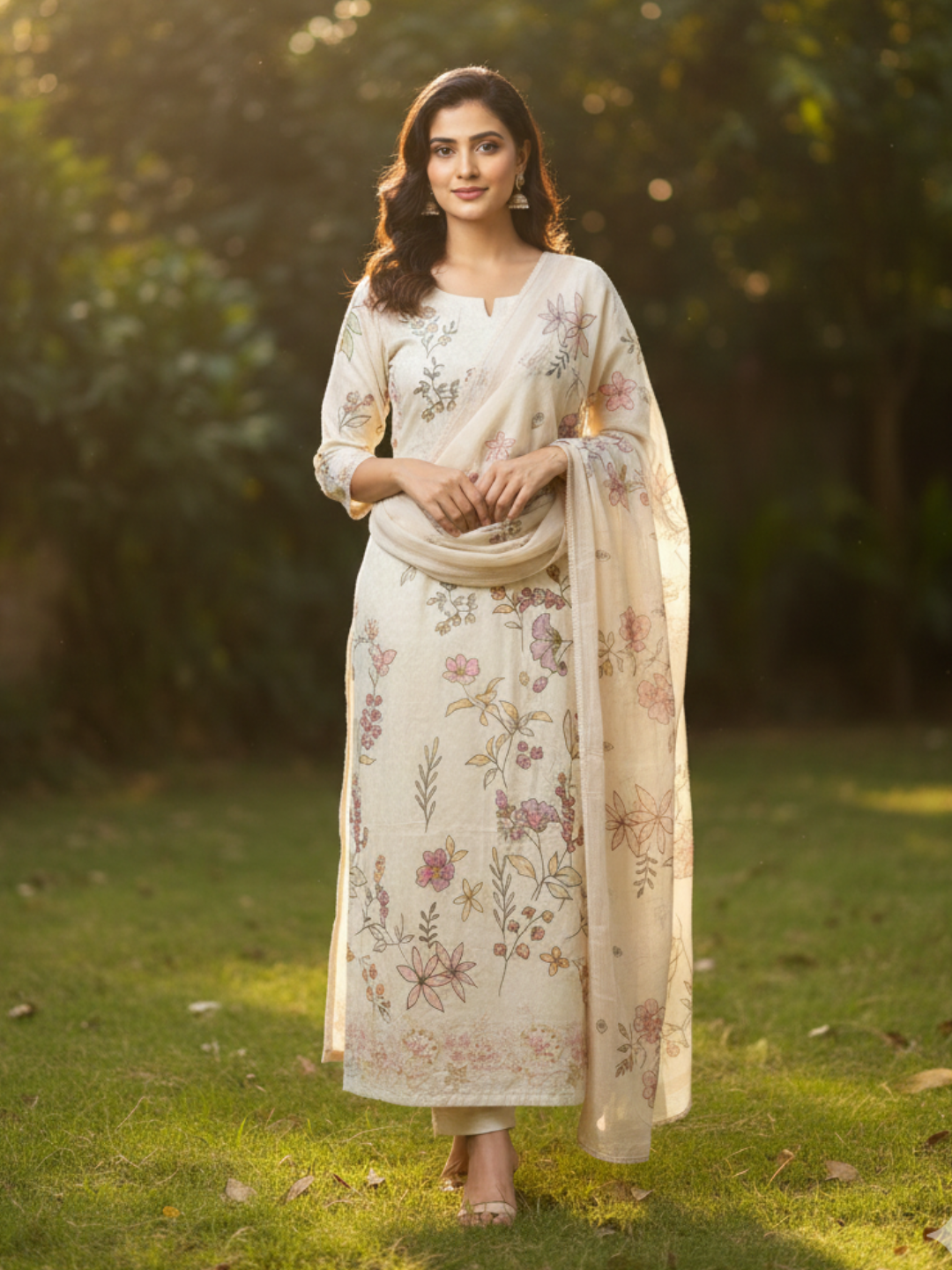Dupatta: Designer muslin printed dupatta , adding a stylish and statement-making finish to the ensemble (Length: 2.35 meters)