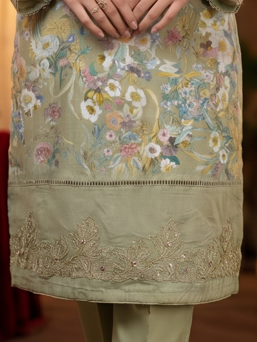 Shirt: Premium cotton shirt featuring elegant highlighted with embroidery. (Length: 2.50 meters)