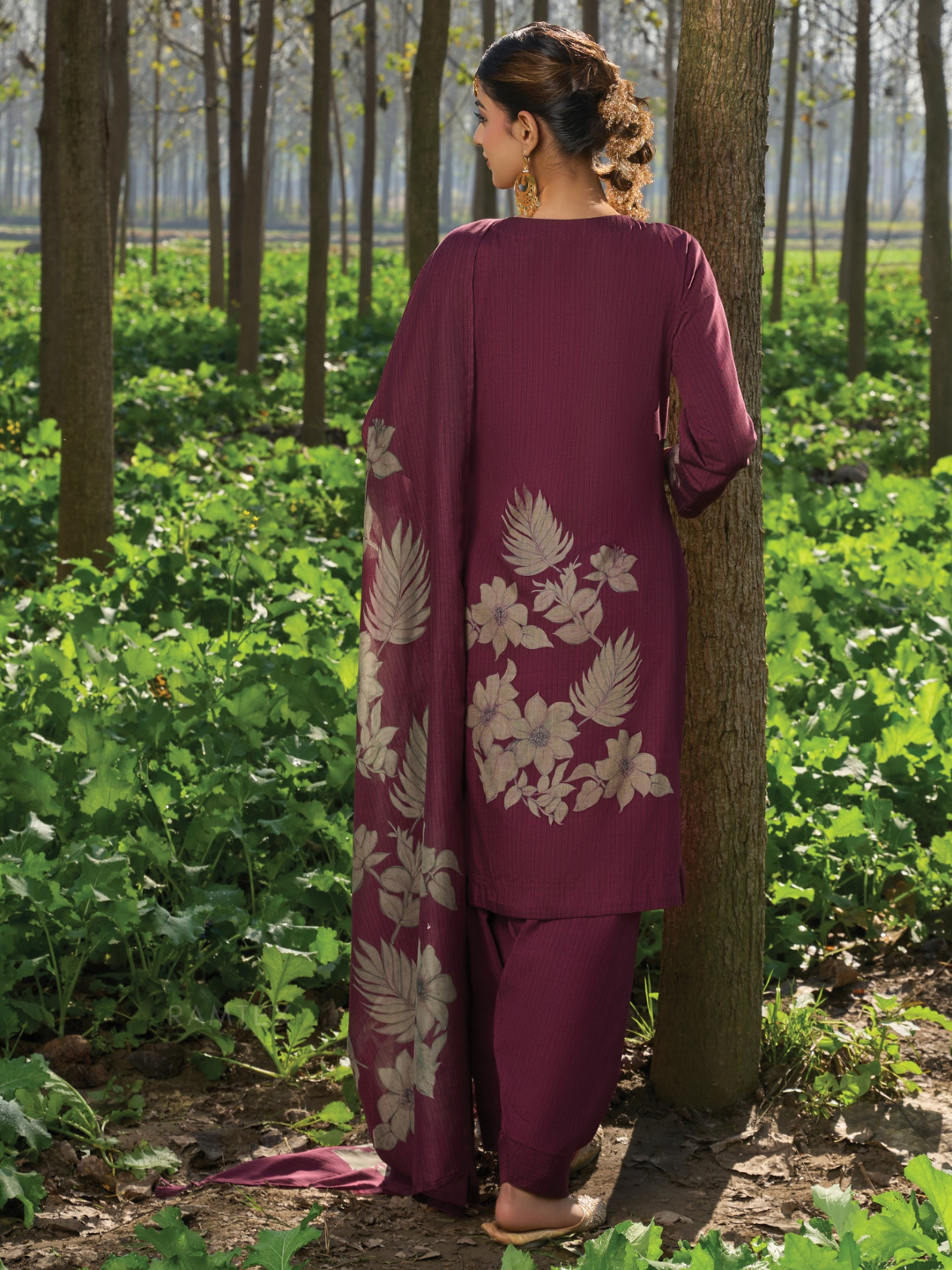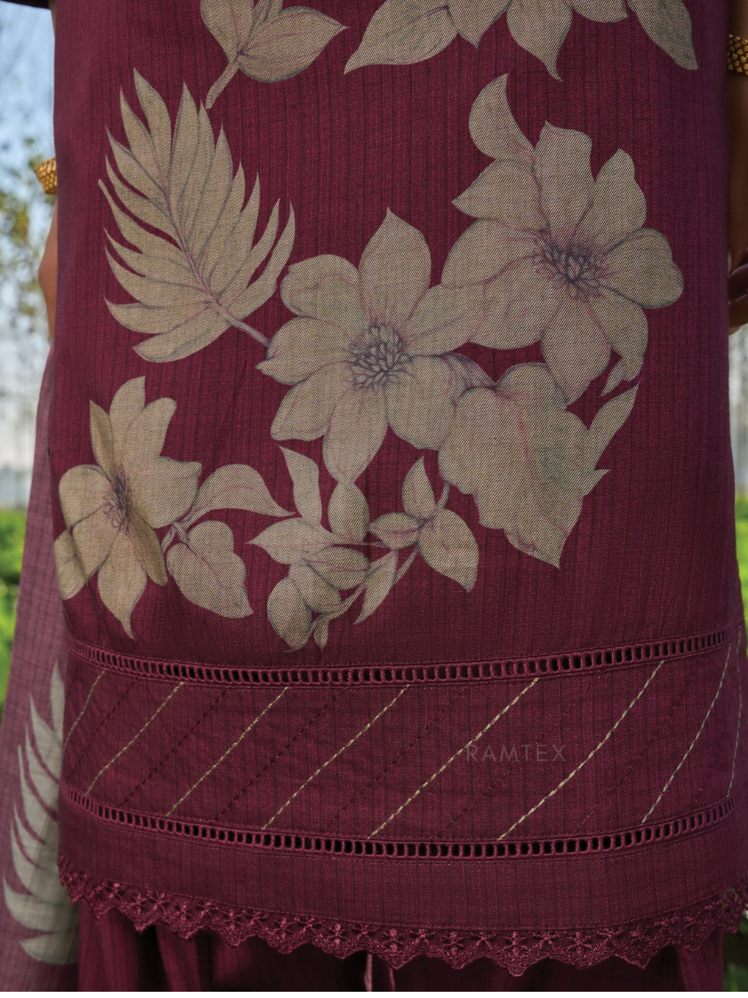 Bottom: Plain matching cottswool fabric with a soft, graceful fall. (Length: 2.75 meters)