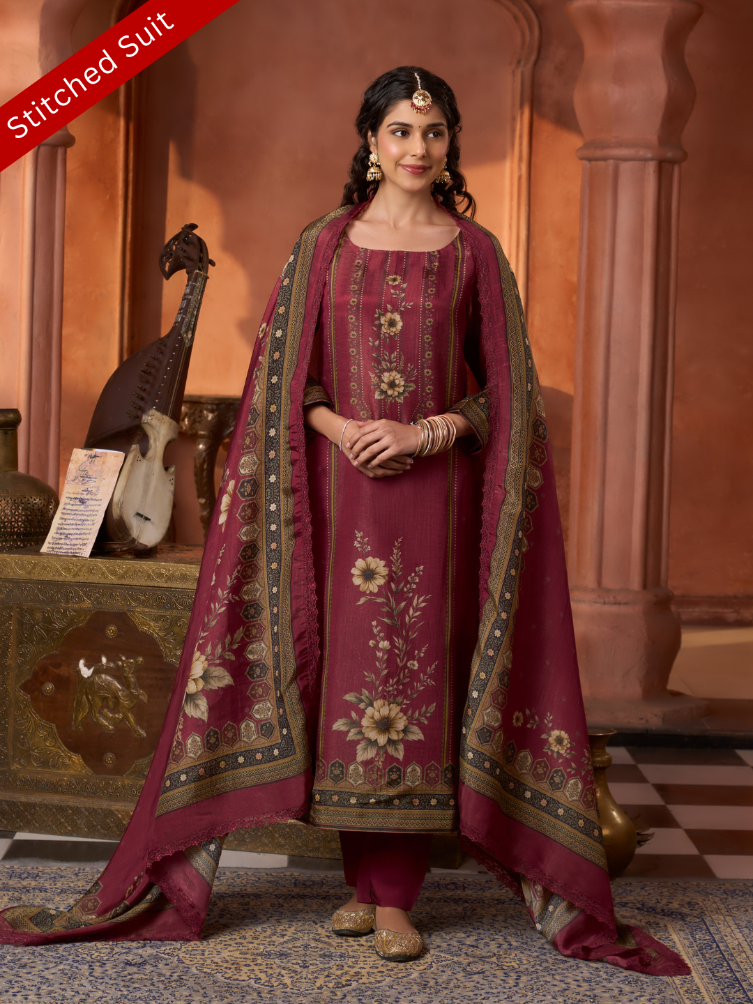 Raspberry Gucci Silk Kashmiri Print Stitched Suit Set